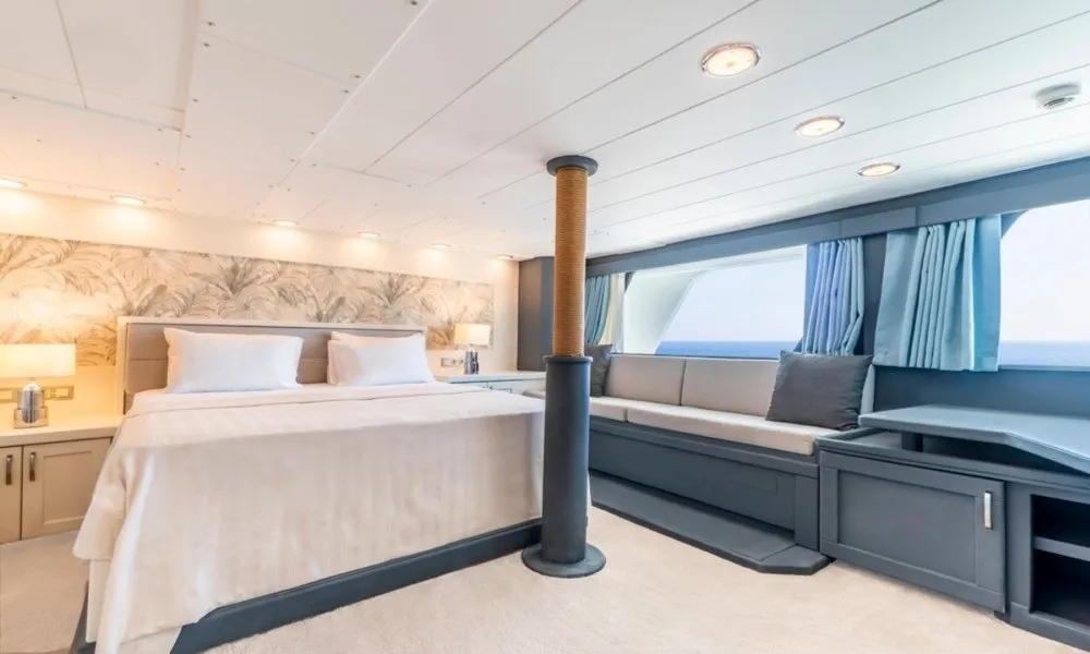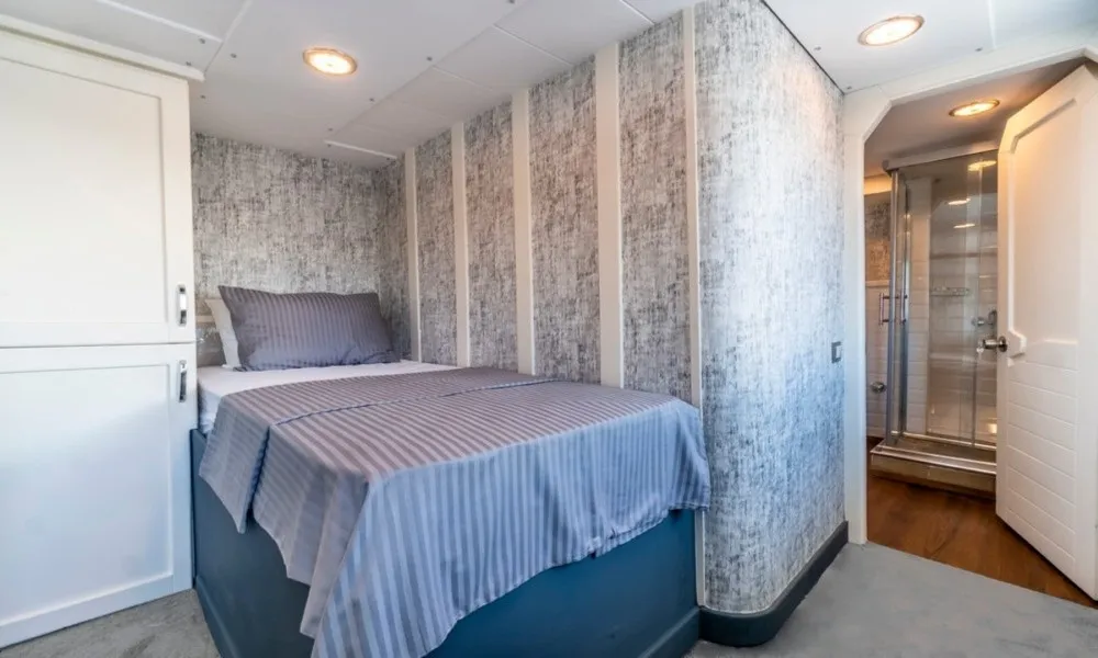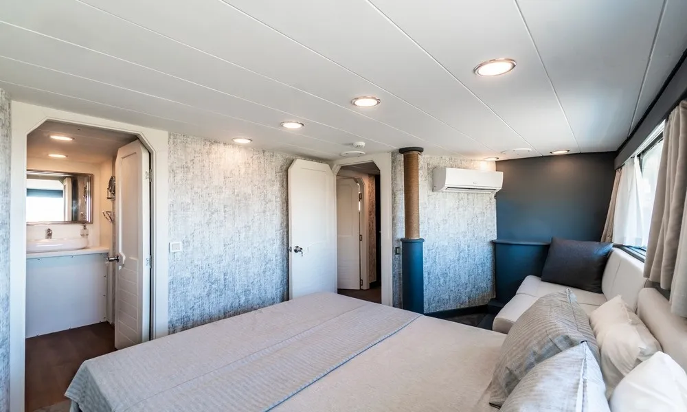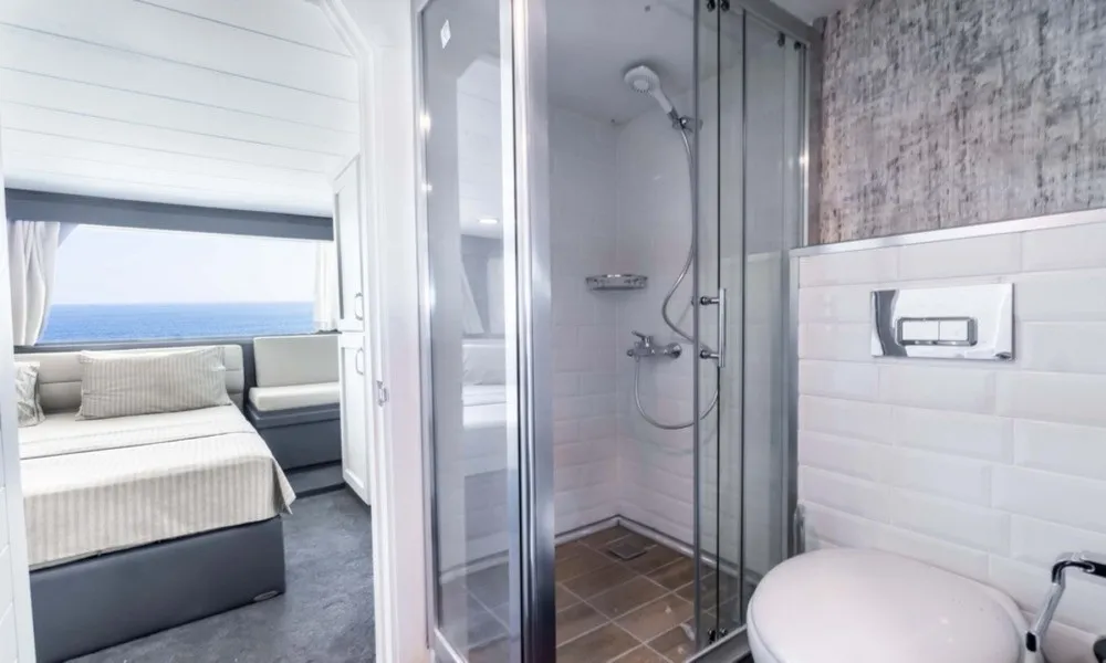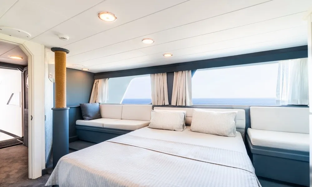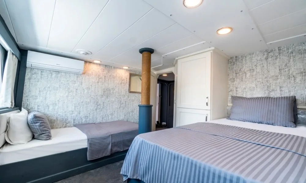 6 kabinin dağılımı, 2 master, 2 double ve 2 VIP şeklindedir. 12 misafirimizi ağırlamak için elverişlidir. 24 saat klima hizmeti ile misafirlerinin konforunu ön planda tutar.