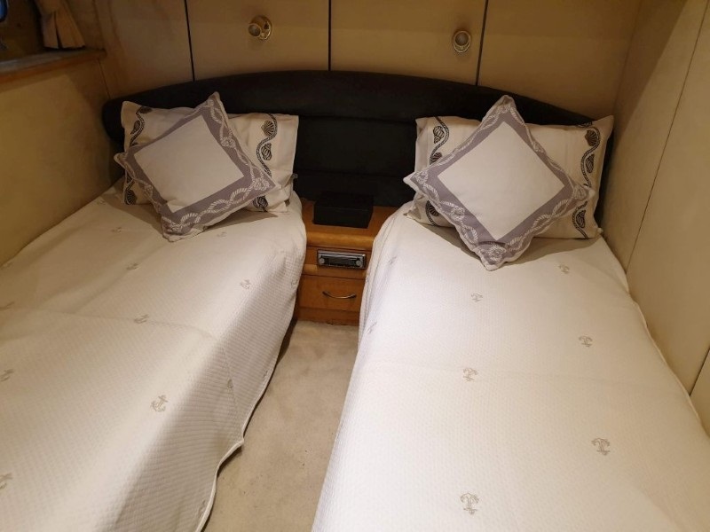 Toplam 4 kabini bulunan New Dawn, 1 master, 1 VIP, 1 twin ve 1 ranza kabin düzeniyle 8 kişilik misafir gruplarına hizmet vermektedir. Kabinlerinde zarif ve modern bir tasarım hâkimdir. Yatımızda opsiyonel klima kullanımı ile her mevsim rahat bir seyir imkânı sağlanır. 1 kaptan ve 1 gemiciden oluşan deneyimli mürettebatımız, misafirlerimize kusursuz bir mavi yolculuk deneyimi sunar.