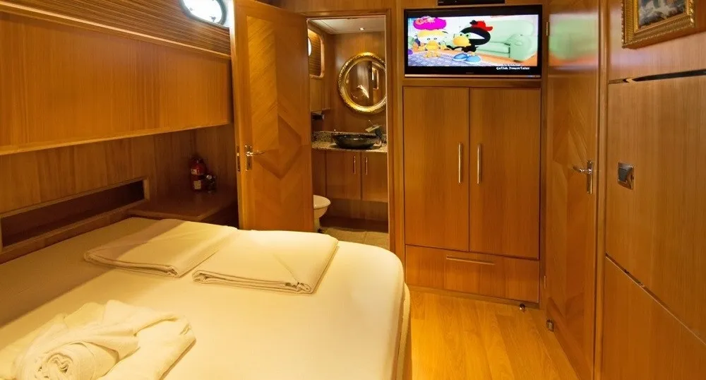2014 yılında denize indirilen Golden Story Trawler (Babosch Trawler), modern tasarımı ve konforlu yapısıyla deniz tutkunlarına unutulmaz bir mavi yolculuk deneyimi sunuyor. 22 metre uzunluğundaki teknemiz, 4 double kabiniyle toplamda 8 misafir ağırlama kapasitesine sahiptir. Her kabin, klima, duşakabin ve WC gibi detaylarla donatılarak misafirlerimize ev konforunu yaşatacak şekilde tasarlanmıştır.