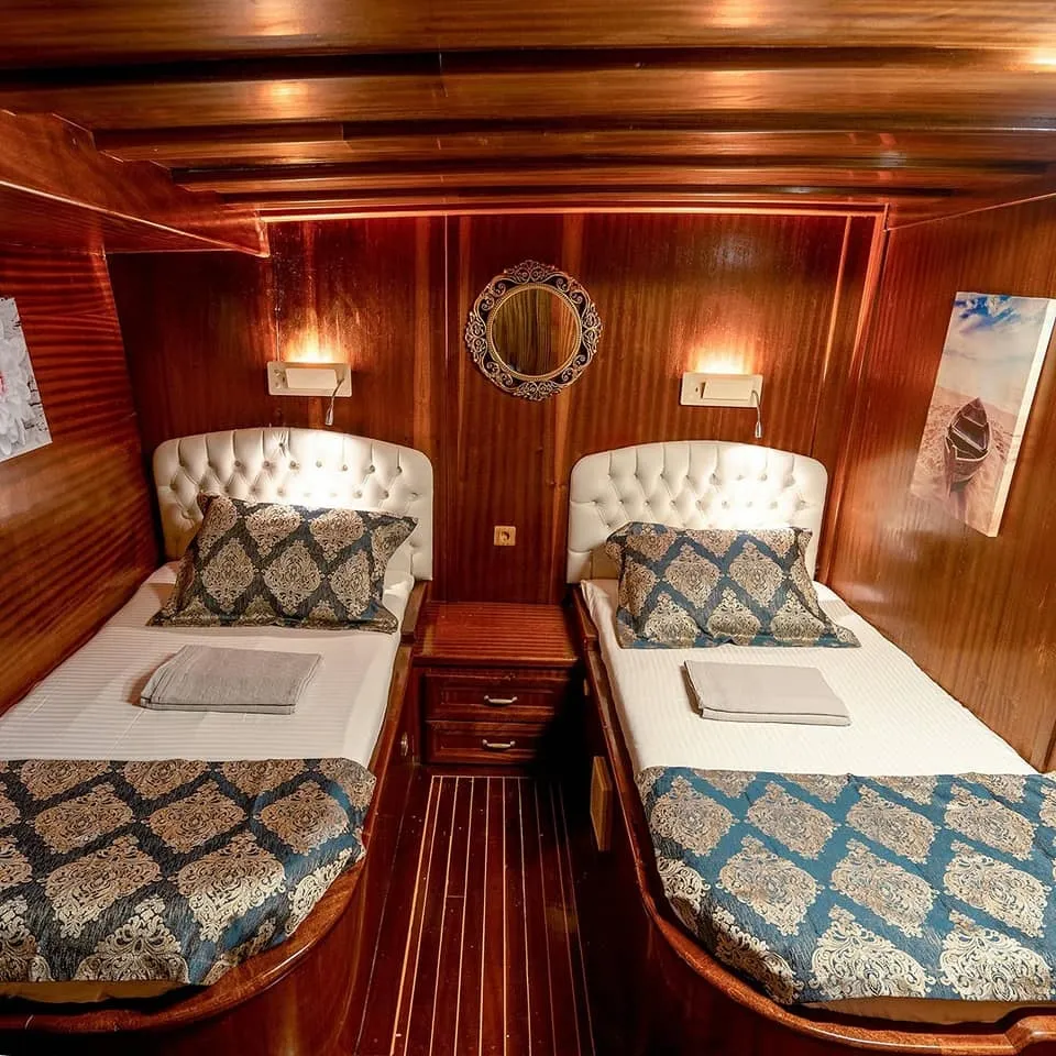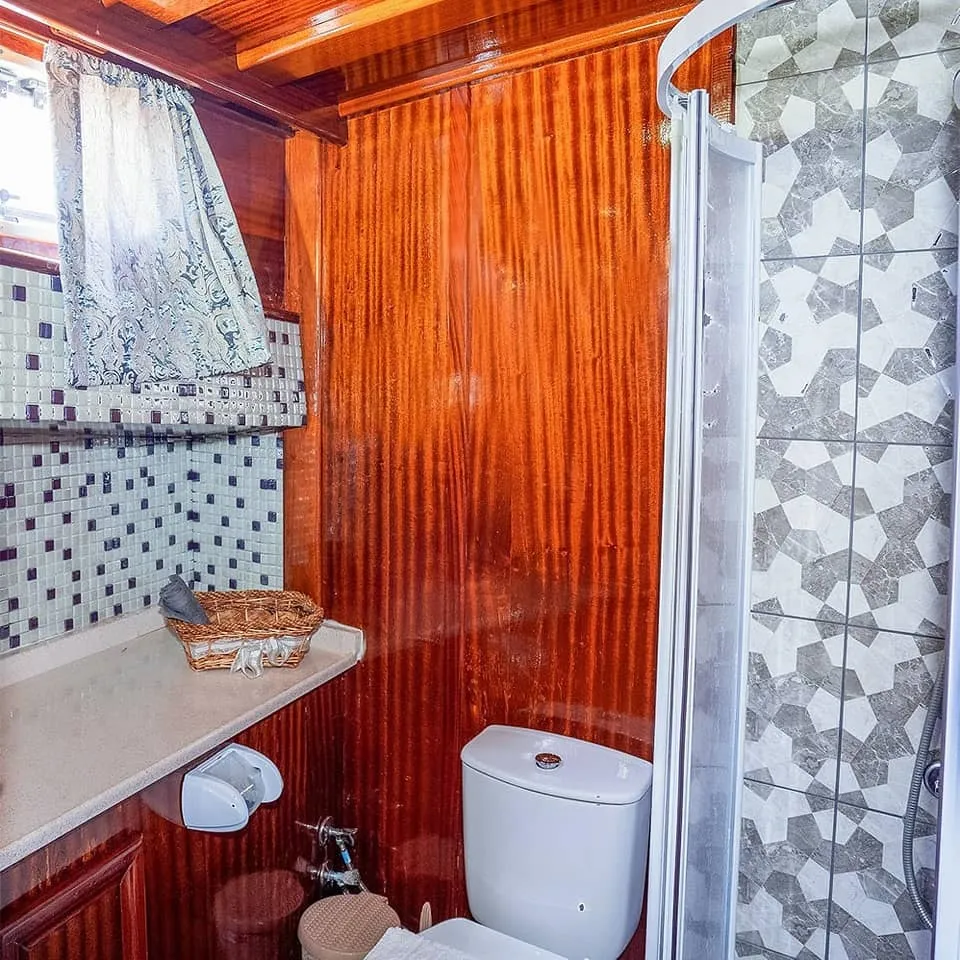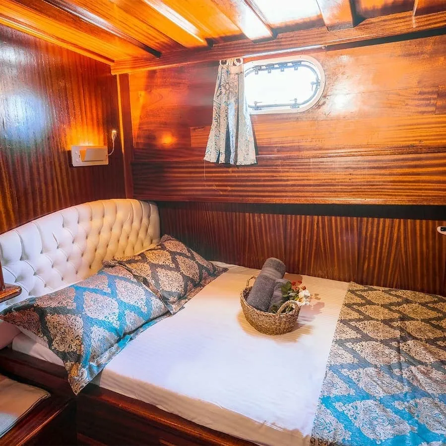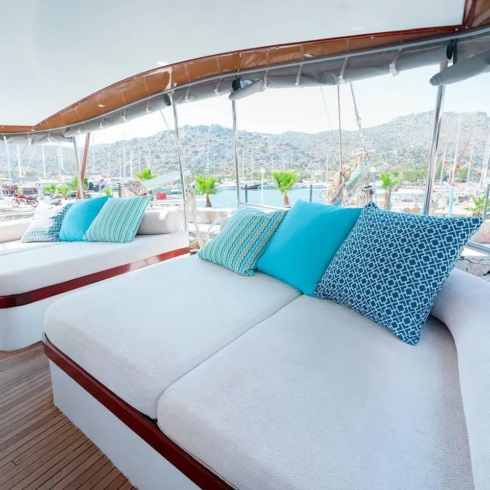 Her kabin, modern duşakabin ve ev tipi tuvalet gibi yüksek standartlarda olanaklarla donatılmıştır. Yaşam alanları, tatilinizi rahatça geçirebilmeniz için tasarlanmış olup, şık oturma grupları, geniş güverte alanları ve güneşlenme alanları ile donatılmıştır. Teknemiz, konforlu bir şekilde mavi yolculuğun tadını çıkarabileceğiniz ideal bir tercihtir.