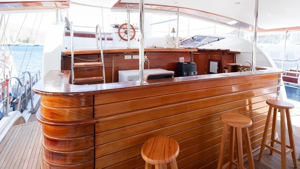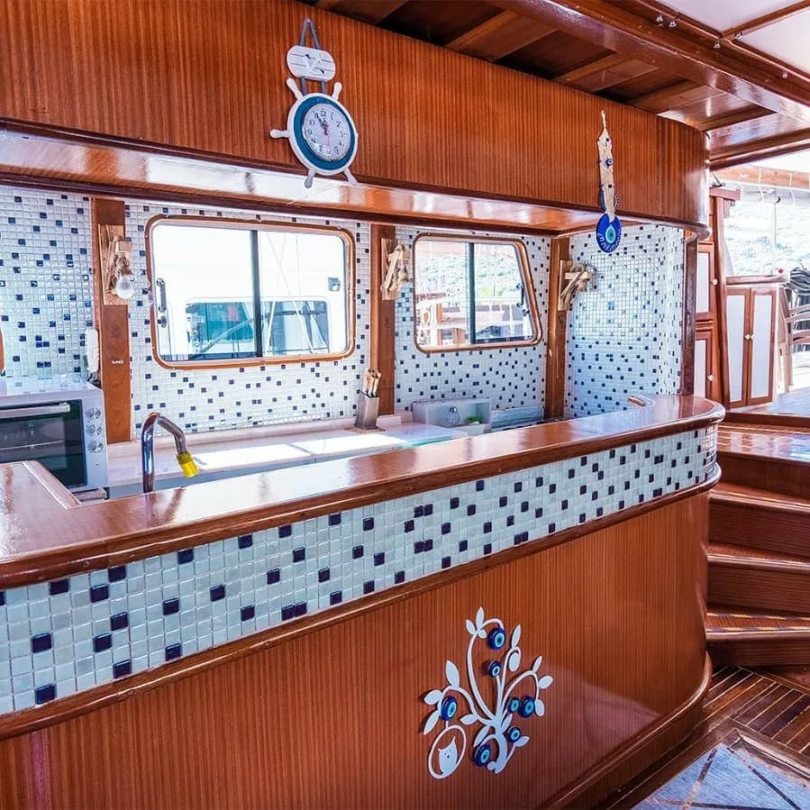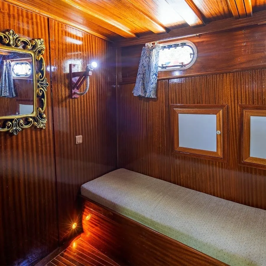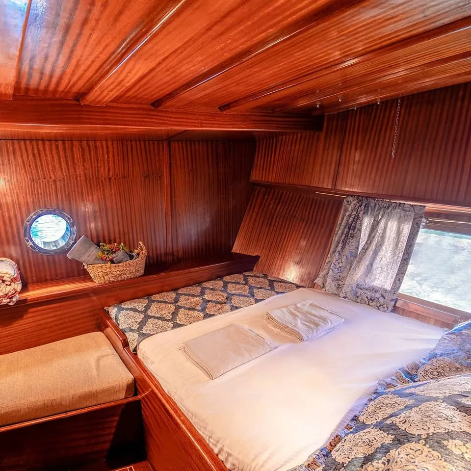 Her kabin, modern duşakabin ve ev tipi tuvalet gibi yüksek standartlarda olanaklarla donatılmıştır. Yaşam alanları, tatilinizi rahatça geçirebilmeniz için tasarlanmış olup, şık oturma grupları, geniş güverte alanları ve güneşlenme alanları ile donatılmıştır. Teknemiz, konforlu bir şekilde mavi yolculuğun tadını çıkarabileceğiniz ideal bir tercihtir.