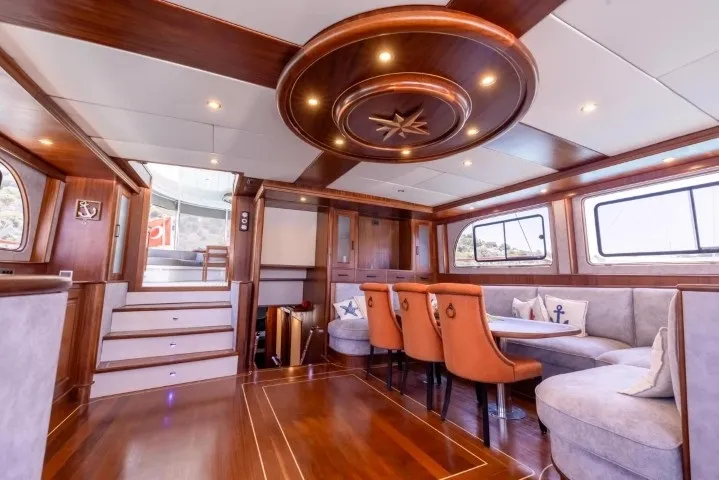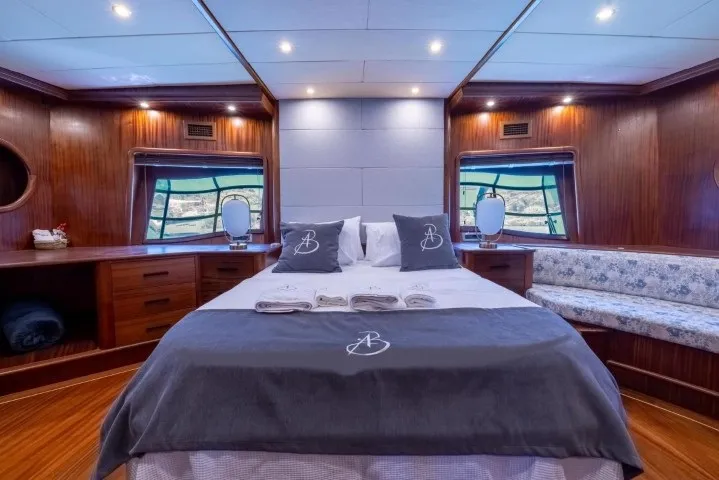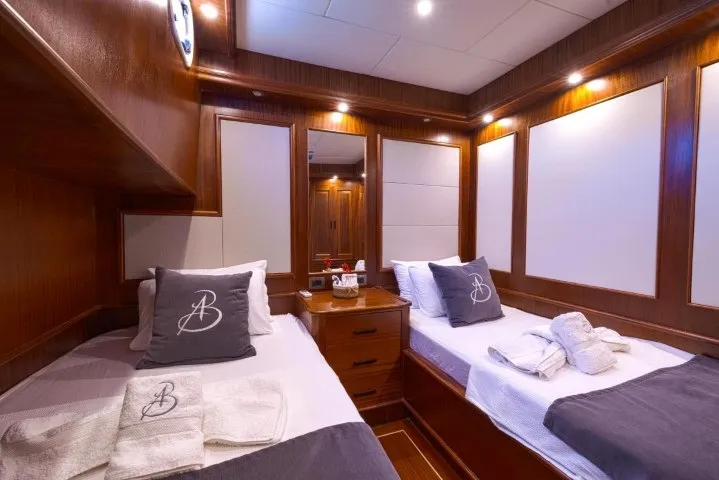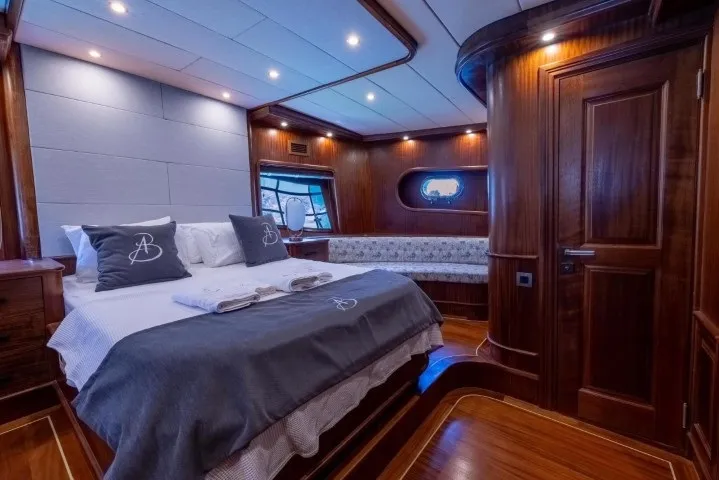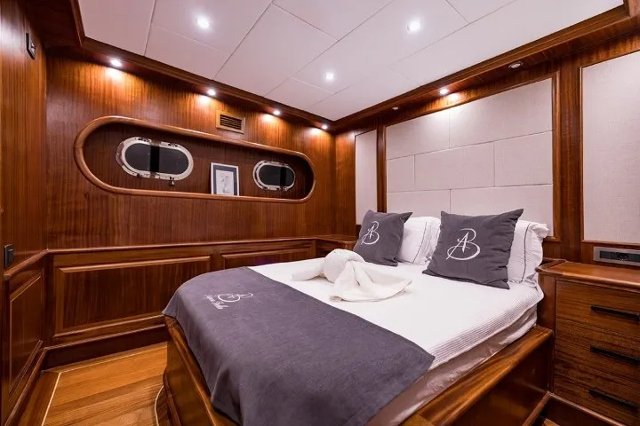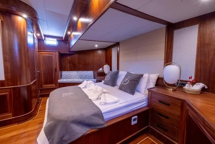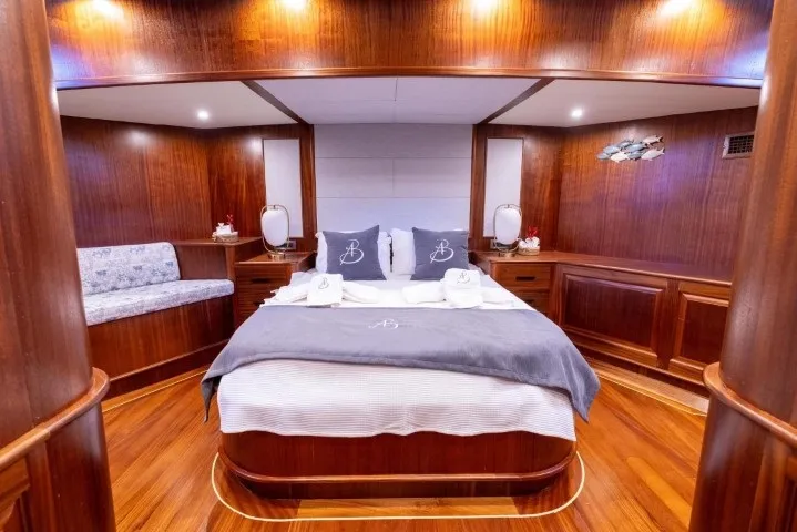Bozburun’un sakin ve doğal atmosferinde lüks bir mavi yolculuk deneyimi yaşamak isteyenler için tasarlanan Aqua Bella, 2023 yılında tamamen yenilenmiş olup lüks konforu ve geleneksel gulet şıklığını bir araya getiriyor. 24 metre uzunluğunda ve 7.2 metre genişliğinde olan teknemiz, 2 master, 1 double ve 1 twin, 1 triple olmak üzere toplam 5 kabininde 11 kişiye kadar misafiri ağırlayabilecek kapasitededir. Her kabinde özel banyo ve klima sistemi mevcut olup, gün boyu 8-12 saat aralığında kesintisiz klima kullanımı sağlanmaktadır. Deneyimli 4 kişilik mürettebat (1 kaptan, 1 aşçı, 1 gemici ve 1 servis personeli), konforunuz ve güvenliğiniz için tüm detaylarla ilgilenirken siz sadece tatilin keyfini çıkarırsınız. Gulet kiralama seçenekleri arasında estetik ve konforuyla öne çıkan Aqua Bella, mavi yolculuğunuzu unutulmaz kılacak donanımlara sahiptir. Türk karasularında sınırsız internet bağlantısı sayesinde, denizin ortasında bile kesintisiz iletişim sağlayabilirsiniz. Bozburun tekne kiralama taleplerinizde, zarif tasarımı ve modern olanaklarıyla Aqua Bella, Ege’nin bakir koylarında özgürce dolaşmak isteyenler için hazır bir seçenektir. Teknede sunulan su sporları arasında paddle board, ringo, amatör maske, şnorkel, palet ve amatör balık tutma ekipmanları yer almaktadır. Bozburun lüks tekne kiralama arayışınızda Aqua Bella, geniş yaşam alanları, yüksek hizmet kalitesi ve şıklığıyla beklentilerinizi fazlasıyla karşılayacaktır. Hayalinizdeki mavi yolculuk için maviyolculuk.org tekne kiralama departmanımız ile hemen iletişime geçebilirsiniz.