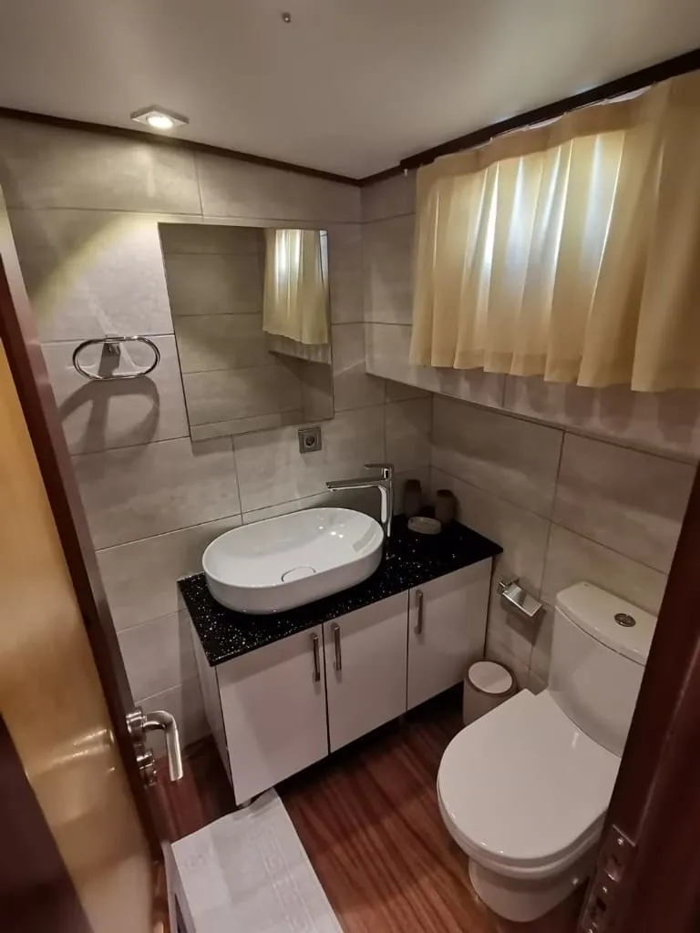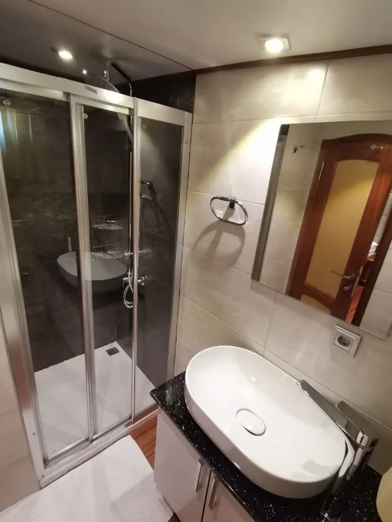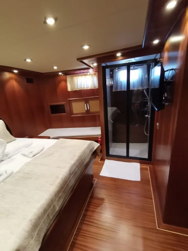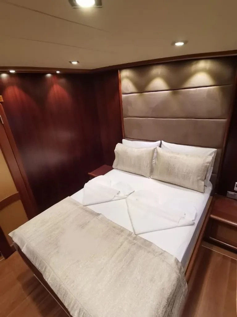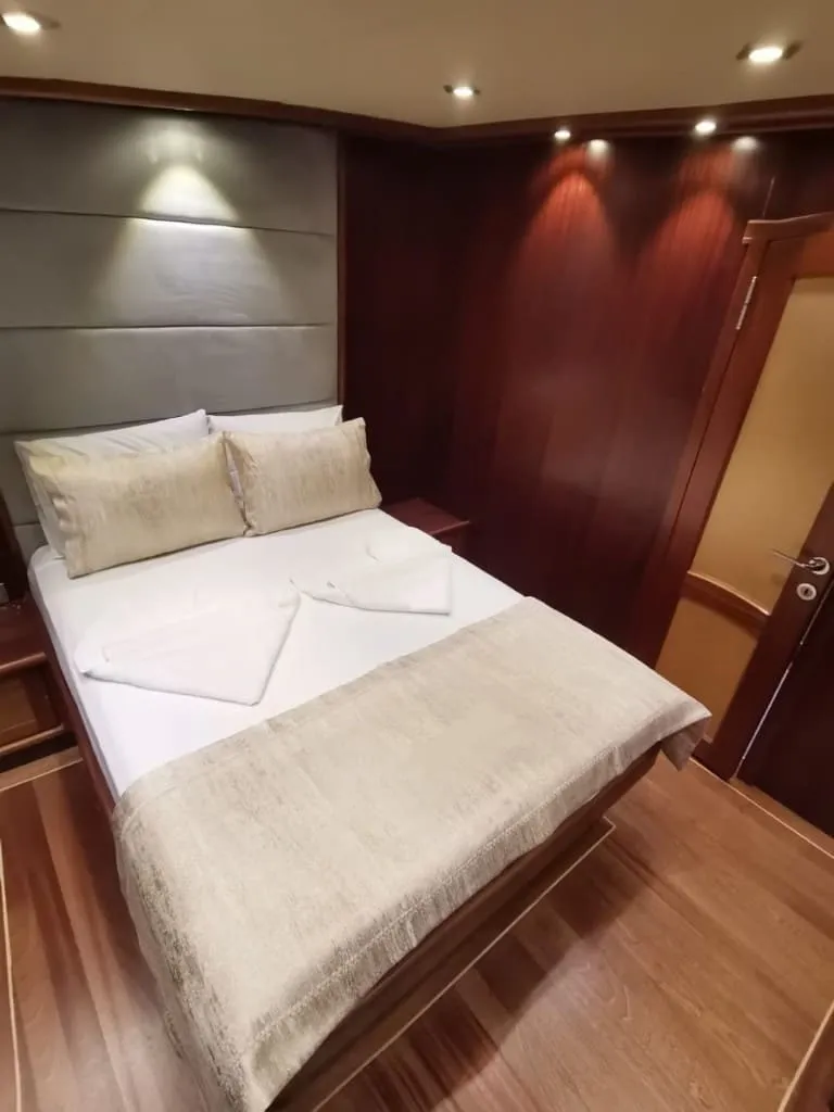 12 kişiye kadar misafir ağırlayabilen Arın Deniz gulet, 2 master, 2 double ve 2 twin kabin düzenine sahiptir. Her kabin, özel duş ve wc ile donatılmış olup, modern tasarımıyla ev konforunda bir konaklama deneyimi sunar. Yaz sıcaklarında konforunuzdan ödün vermemeniz için teknemizde klima hizmeti 2 - 4 saat sağlanmaktadır.