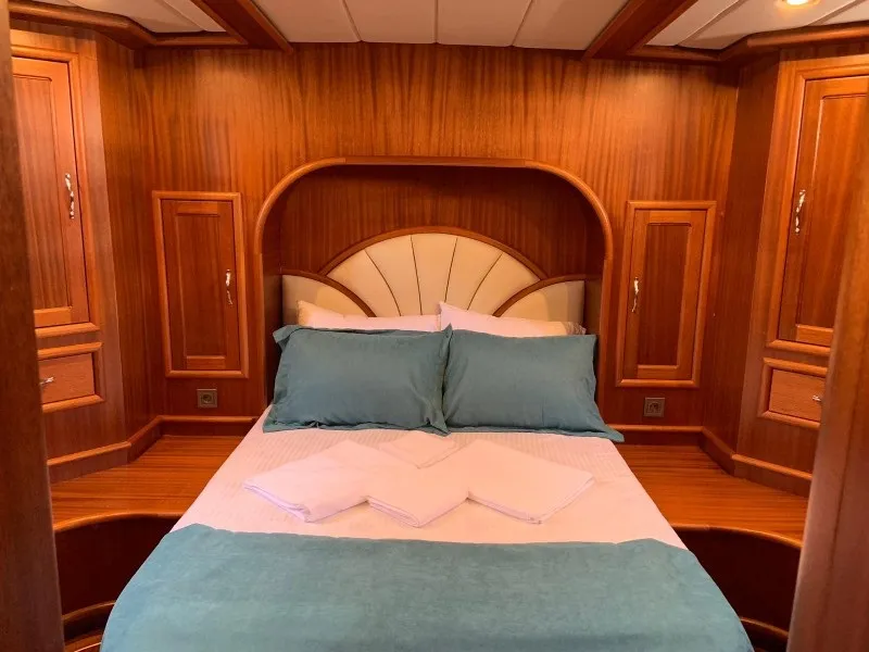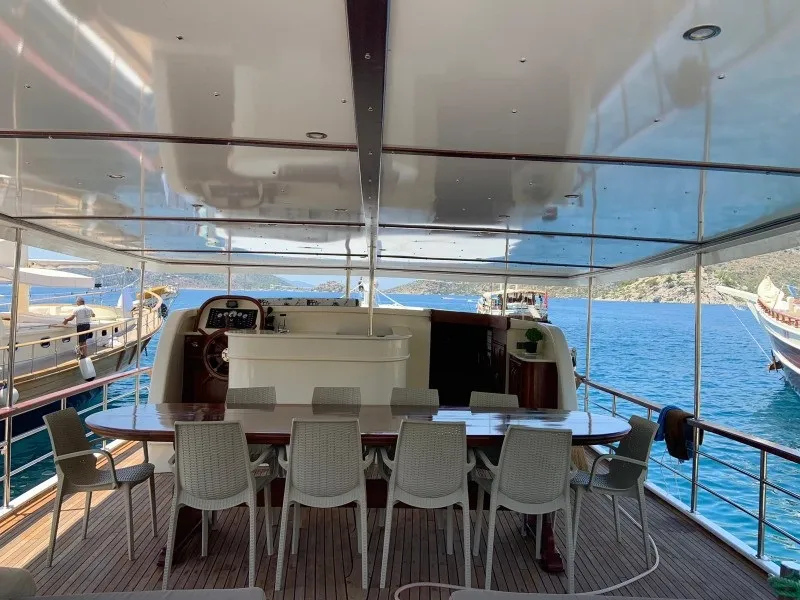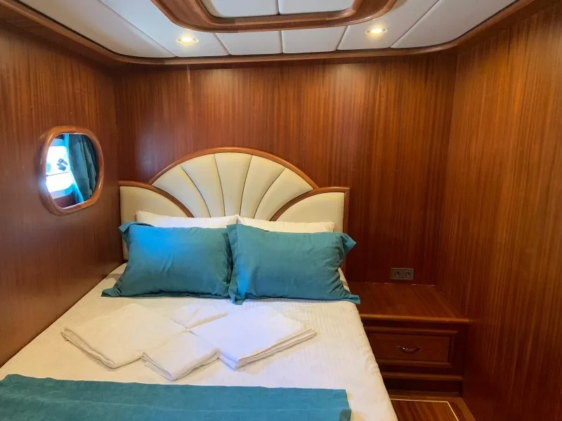 Teknemizin ön ve arka güvertelerinde geniş oturma ve şık yemek alanları yer almakta olup, tüm misafirler için bol miktarda güneşlenme minderi mevcuttur. Mürettebat için özel yaşam alanları bulunan Beyza Nur, 3 kişilik güler yüzlü ve profesyonel ekibiyle unutulmaz bir mavi tur deneyimi sağlamaktadır.