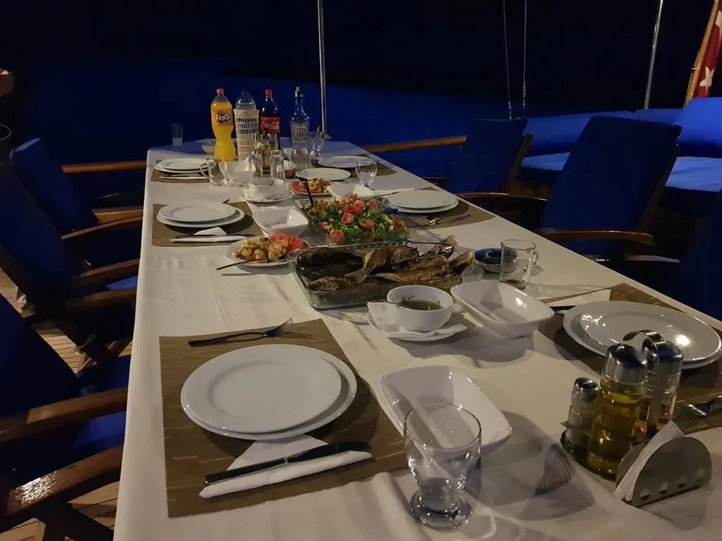 Geniş arka güverte ve salonda yemek alanlarının yanı sıra, ön güvertede güneşlenme minderleri de bulunmaktadır. Teknede, rüzgar sörfü ve kano gibi su sporları ile aktif bir tatil yapabilir, Ege'nin bakir koylarını keşfederken doğanın tadını çıkarabilirsiniz. Ayrıca, kutu oyunlarıyla dostlarınızla eğlenceli saatler geçirebilir, her anı daha keyifli kılabilirsiniz.