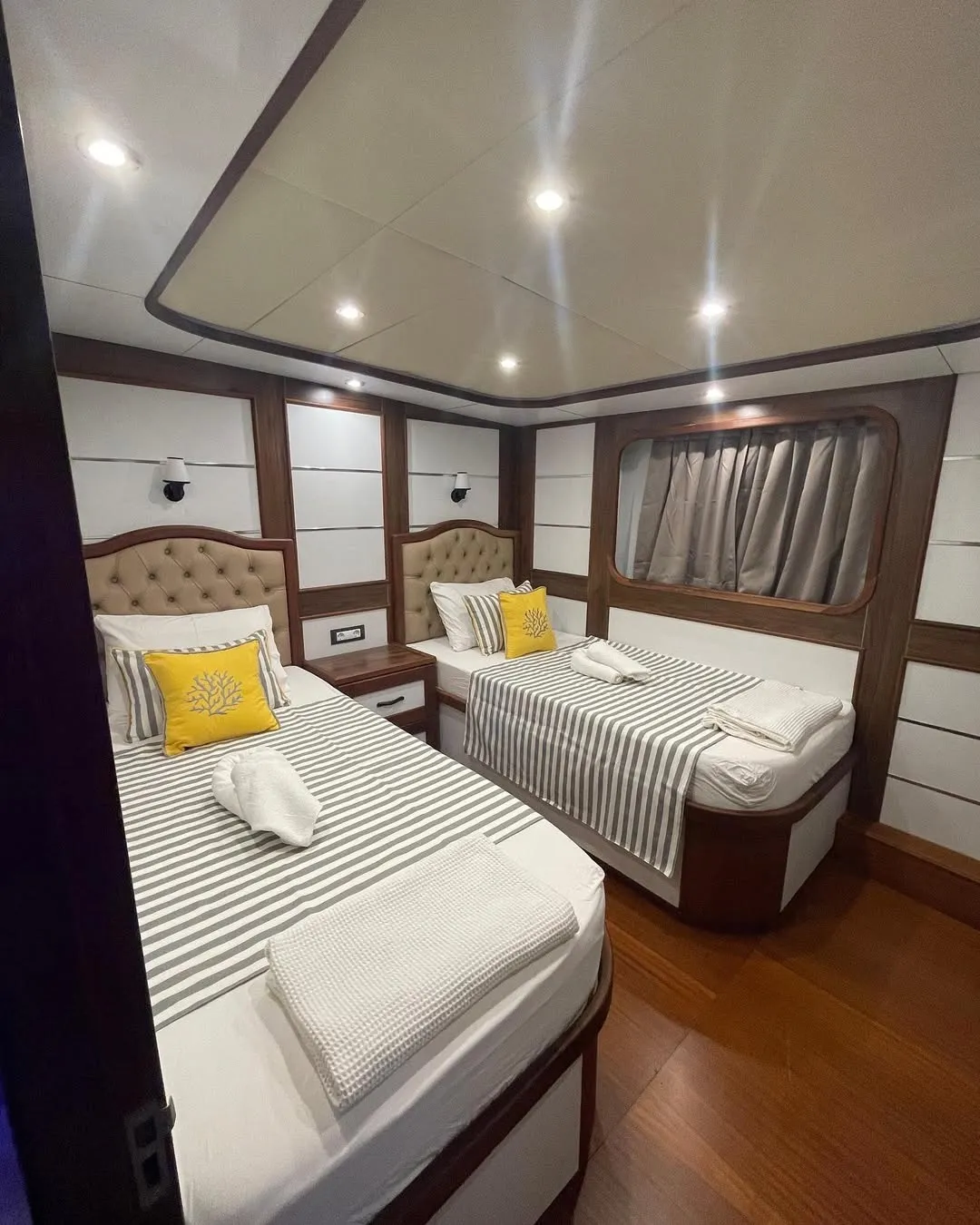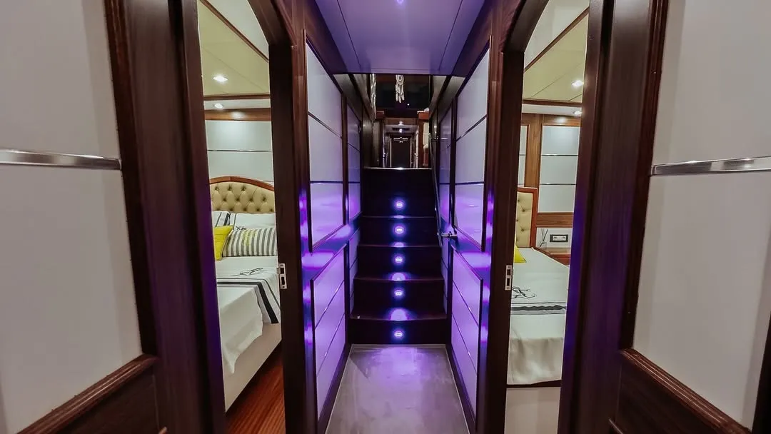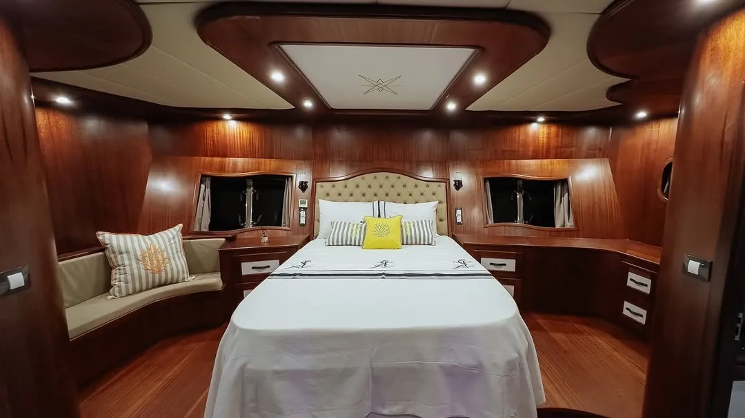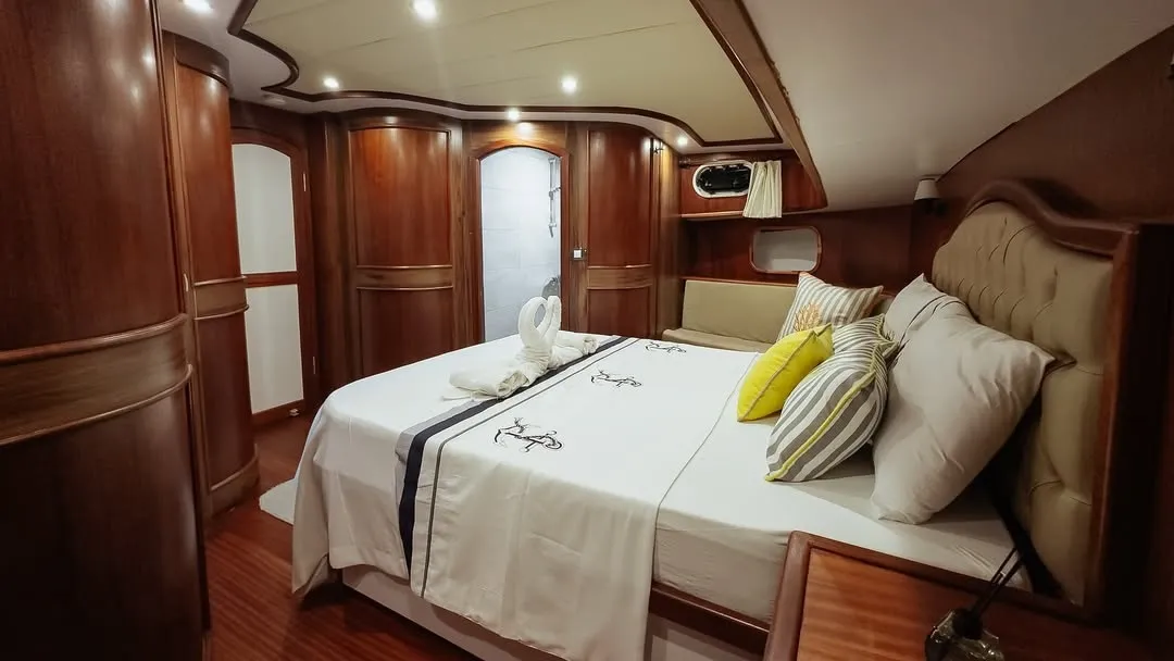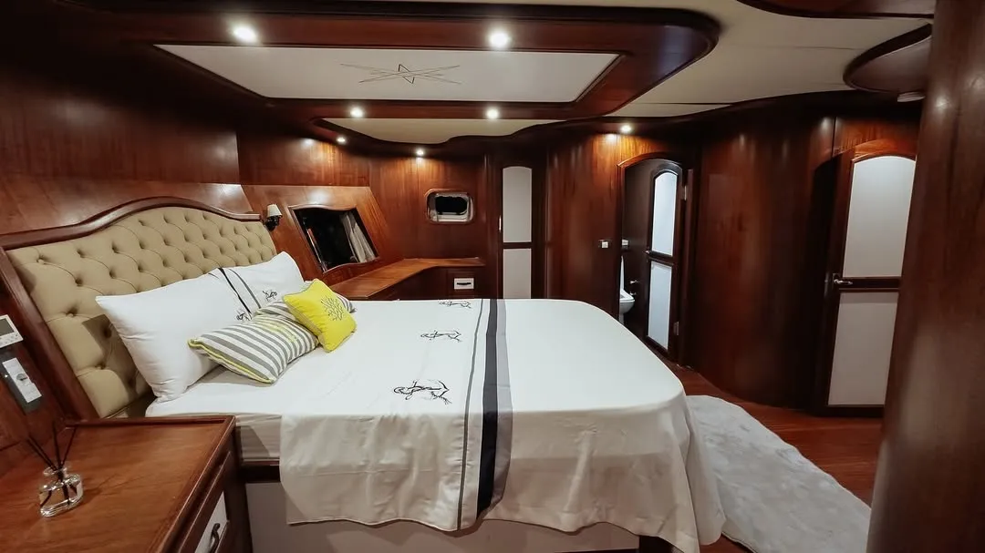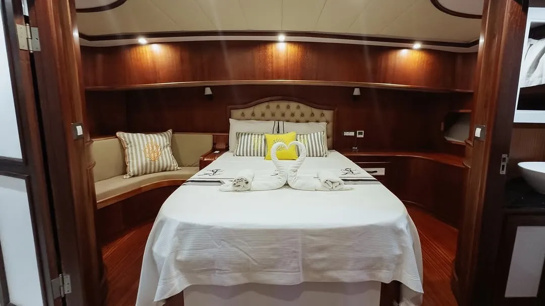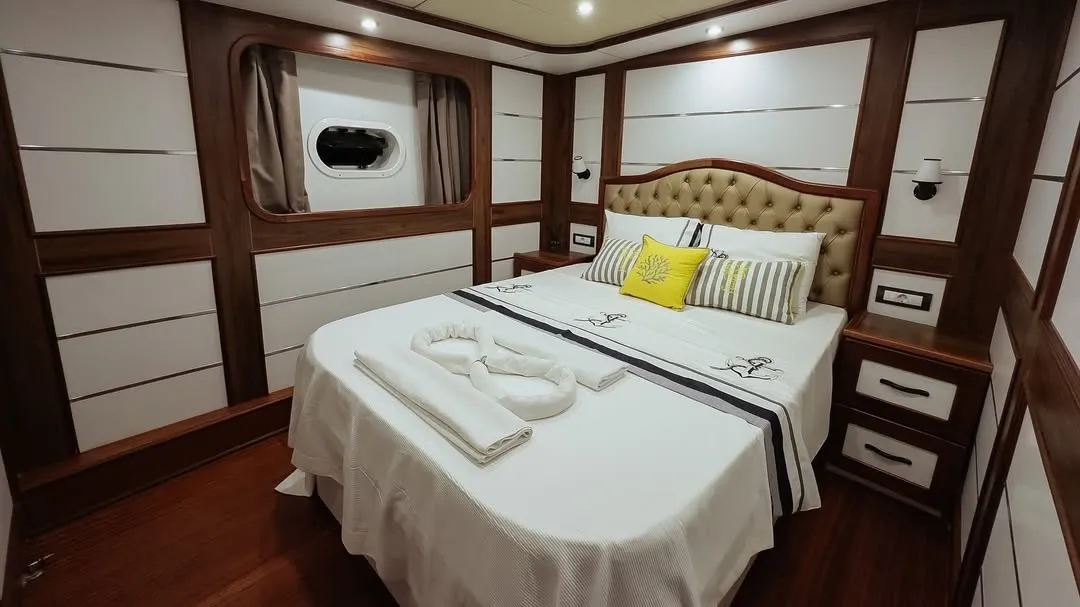 Teknemizde yer alan 2 master, 2 double ve 1 twin kabin ile 10 kişilik aile veya arkadaş gruplarınızı rahatlıkla ağırlayabilirsiniz. Tüm kabinlerde duşakabinli banyo, ev tipi tuvalet, saç kurutma makinesi ve klima yer almaktadır. Ferah ve konforlu yaşam alanları sayesinde unutulmaz bir tekne tatili deneyimi sunulmaktadır.