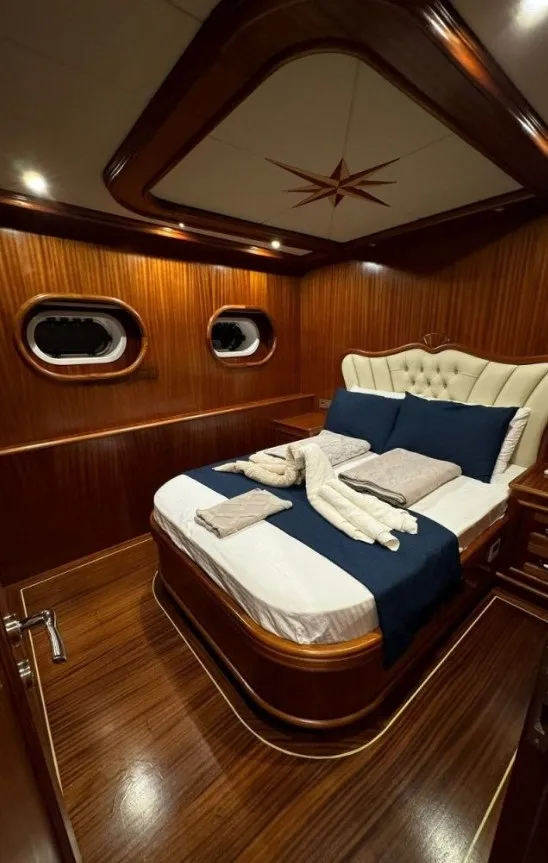 La Vie, sade ama şık tasarımı ve geniş yaşam alanlarıyla lüks tekne kiralama kategorisinde fark yaratmaktadır. 2 master, 2 double ve 1 twin olmak üzere toplam 5 konforlu kabini bulunan teknemiz, 10 kişiye kadar olan aile ve arkadaş gruplarını rahatlıkla ağırlayabilmektedir. Her kabininde özel banyo, klima ve depolama alanı bulunan teknemizde her detay misafir memnuniyeti düşünülerek tasarlanmıştır.
