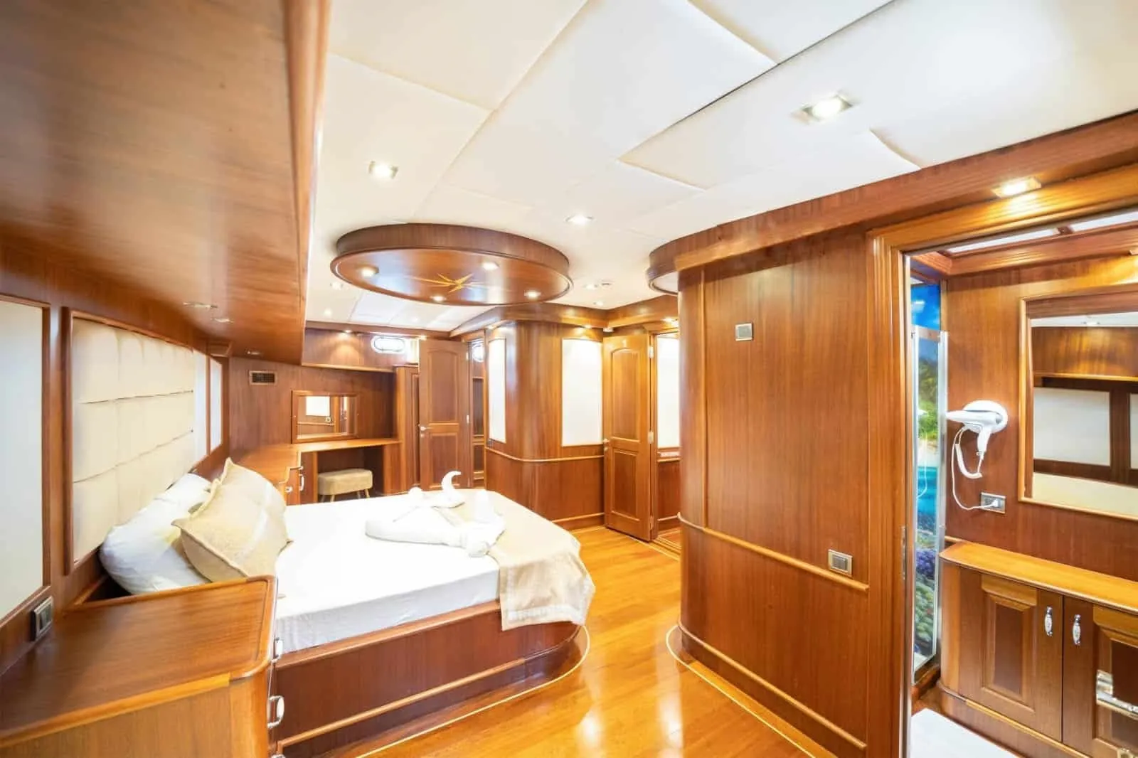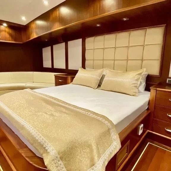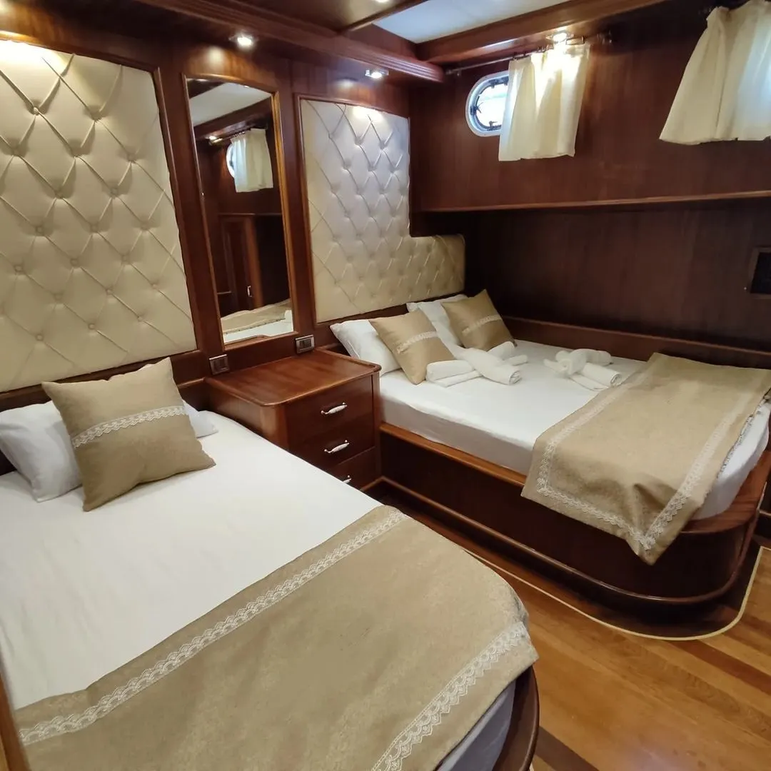 Teknemizde 2 master, 2 double ve 2 triple kabin olmak üzere toplamda 6 kabin bulunur. Her kabin, özel banyo, wc, klima ve internet bağlantısı ile donatılmıştır. Gece-gündüz klima kullanımı ve müzik sistemi gibi olanaklarla, yat kiralama deneyiminiz oldukça keyifli hale gelecektir. Ayrıca, teknemizde bluetooth, USB, aux bağlantılarıyla müzik dinleyebilir, TV ve masa oyunları ile eğlenceli zaman geçirebilirsiniz.