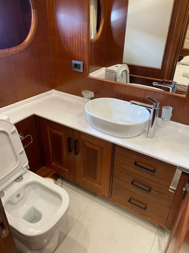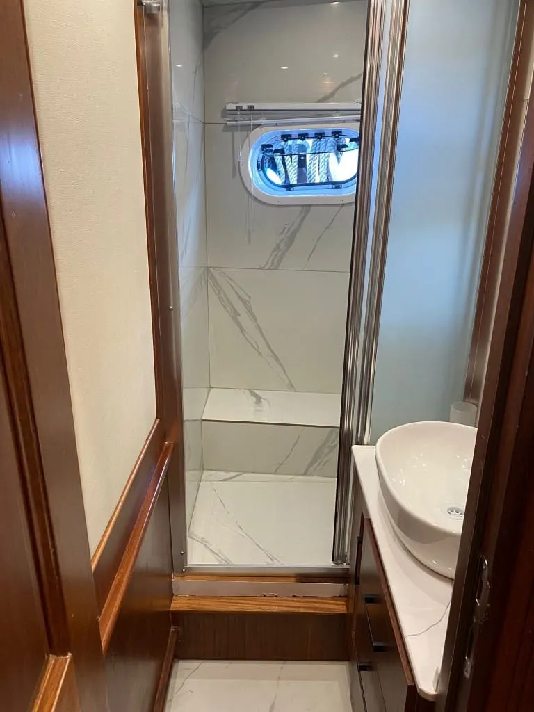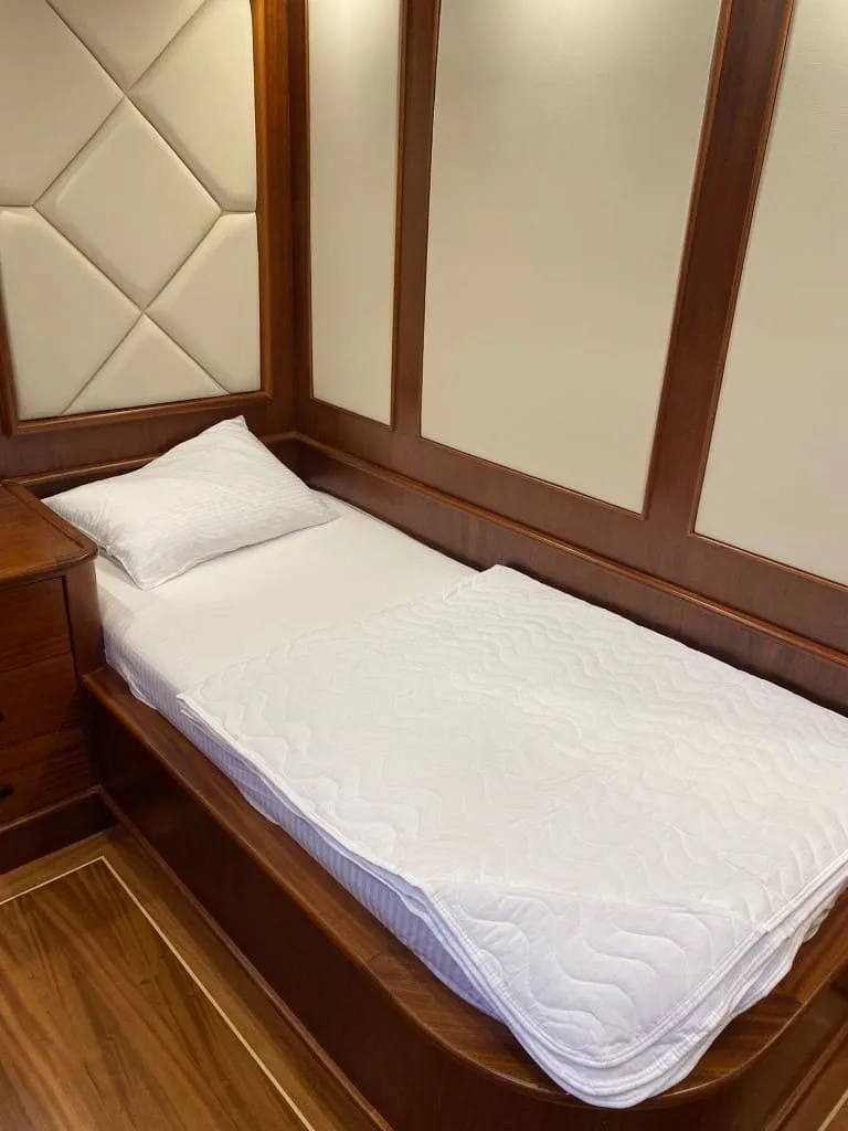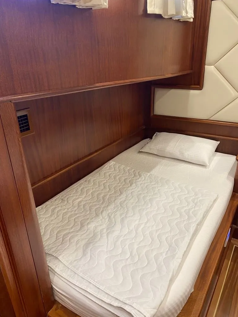 Rose Del Mar’da tamamı özenle tasarlanmış 5 kabin bulunmakta olup, 2 master, 2 double ve 1 twin kabin dağılımı ile toplamda 10 kişiye kadar olan misafir gruplarını ağırlayabilmektedir. Tüm kabinlerde yer alan konforlu yataklar, özel banyolar ve klima sistemi sayesinde gece ve gündüz 8-12 saat aralığında ideal iç ortam sıcaklığını sunar. Yelkenleriyle de seyir keyfi sunan teknemiz, 8 knot seyir ve 10 knot maksimum hız kapasitesiyle hem güvenli hem de akıcı bir yolculuk vadediyor.