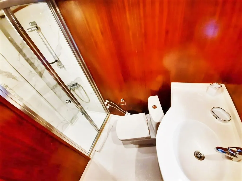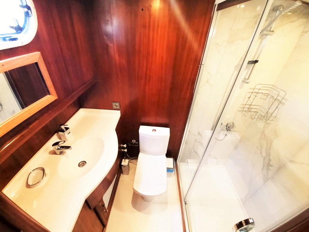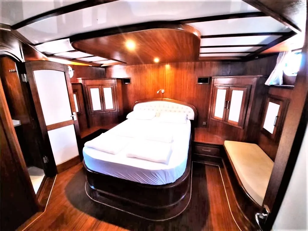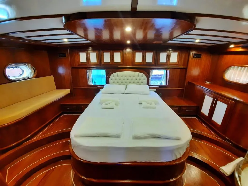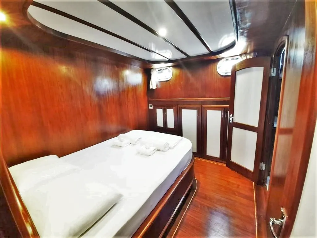 Teknemizde 2 master, 2 double ve 1 twin olmak üzere toplam 5 ferah kabin bulunmaktadır. Her kabinde ebeveyn banyosu ve klima mevcut olup, klima kullanımı gün içinde 4-6 saat ile sınırlıdır.