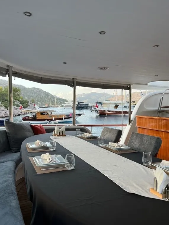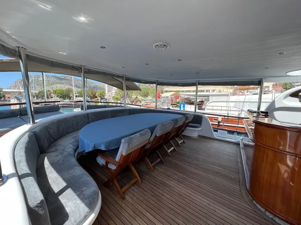 Deneyimli 4 kişilik mürettebat, tatiliniz boyunca tüm ihtiyaçlarınızı karşılamak için hizmet vermektedir. Arka güvertede geniş bir yemek ve dinlenme alanı, ön güvertede güneşlenme minderleri ve rahat oturma grupları bulunmaktadır.