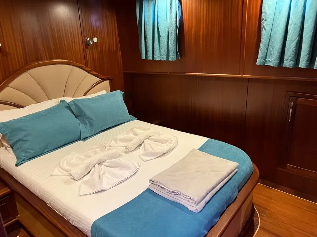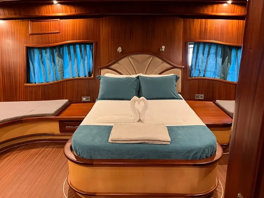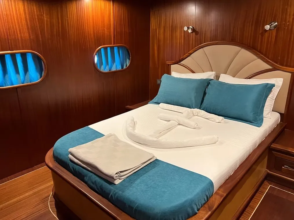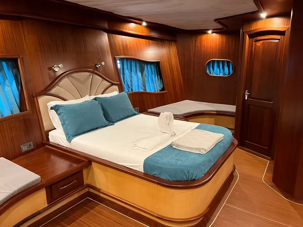 Teknemizde 2 master ve 4 double olmak üzere toplam 6 kabin bulunmaktadır. Her kabinde özel wc, duşakabin ve klima yer almakta olup, 12 kişilik misafir grupları için konforlu bir konaklama imkanı sunulmaktadır.