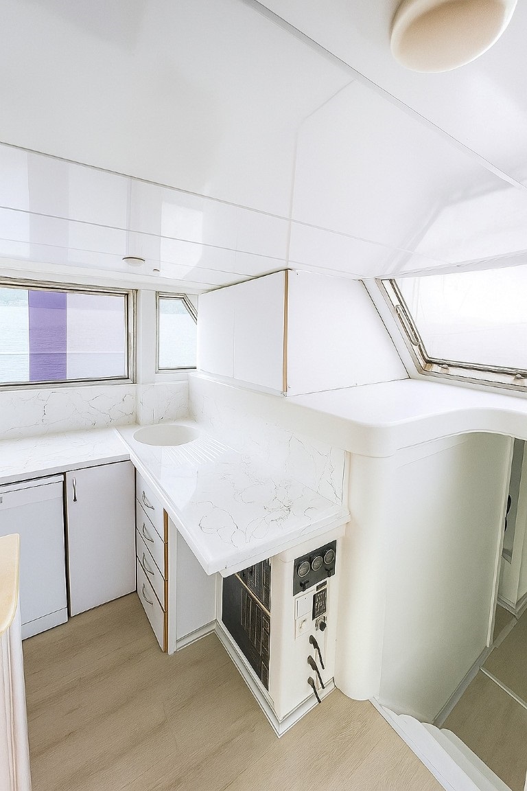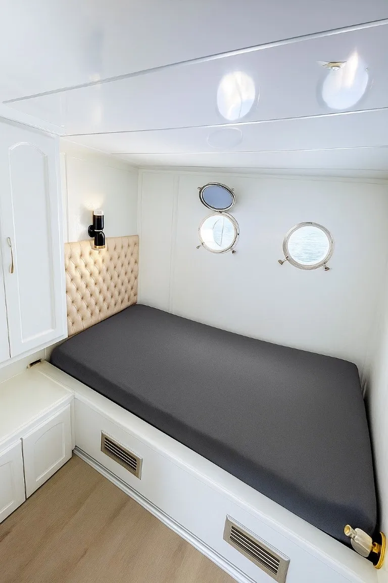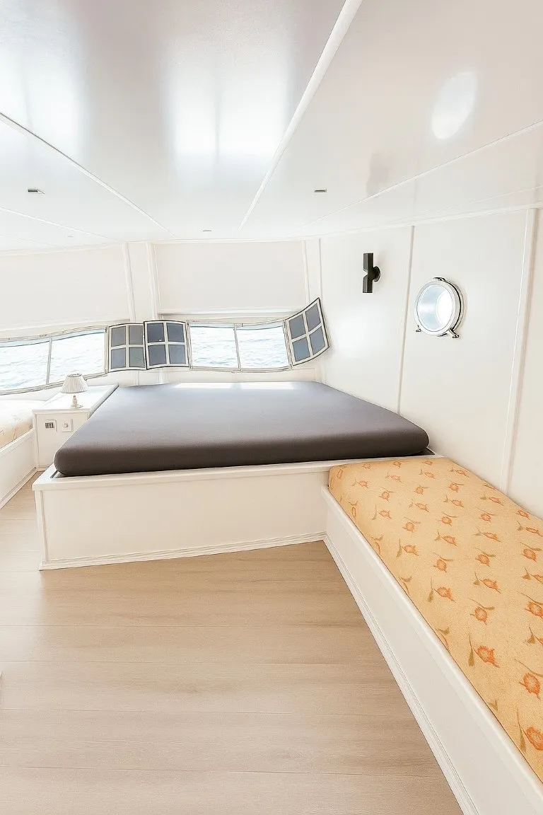 Teknemiz, 2 master ve 3 double olmak üzere toplam 5 ferah kabin ile 10 kişilik misafir kapasitesine sahiptir. Her kabinde duş ve tuvalet bulunması, konaklama deneyiminizi daha da rahat ve özel kılar. Arka güvertede ve salonda bulunan açık-kapalı yemek alanları, sevdiklerinizle keyifli anlar yaşamanız için idealdir. Ayrıca ön güvertede geniş ve rahat güneşlenme alanları ile mavi yolculuğun tadını çıkarabilirsiniz.