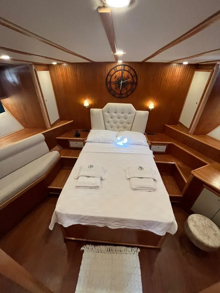 Zehra Sultan Guleti, 24 metre uzunluğa ve 6.5 metre genişliğe sahiptir. 6 kabinli yapısı ile 12 kişilik misafir gruplarını ağırlayabilen bu özel yat; 2 Master ve 4 Double kabin düzenine sahiptir. Her kabinde konforlu bir şekilde dinlenebilir, arka güvertede bulunan oturma grubu ve yemek masasında muhteşem manzaralar eşliğinde keyifli anlar yaşayabilirsiniz.