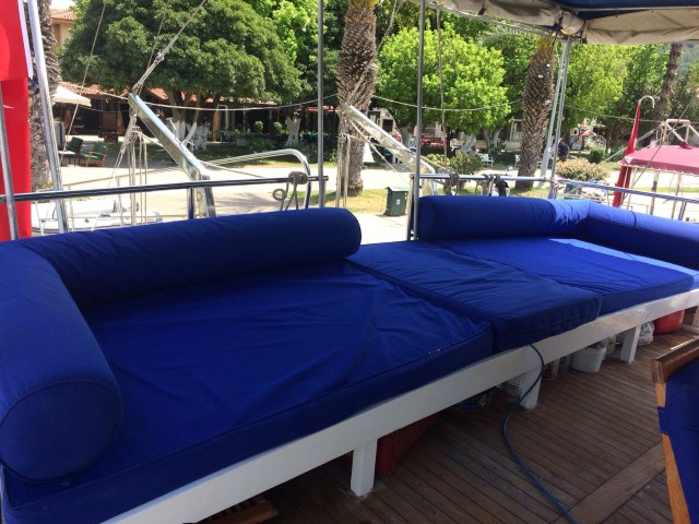 Arka güvertede yemek masası, ön güvertede açılır-kapanır tente ve güneşlenme minderleri bulunup, 3 deneyimli personeliyle sizlere mavi yolculuk hizmeti vermektedir.