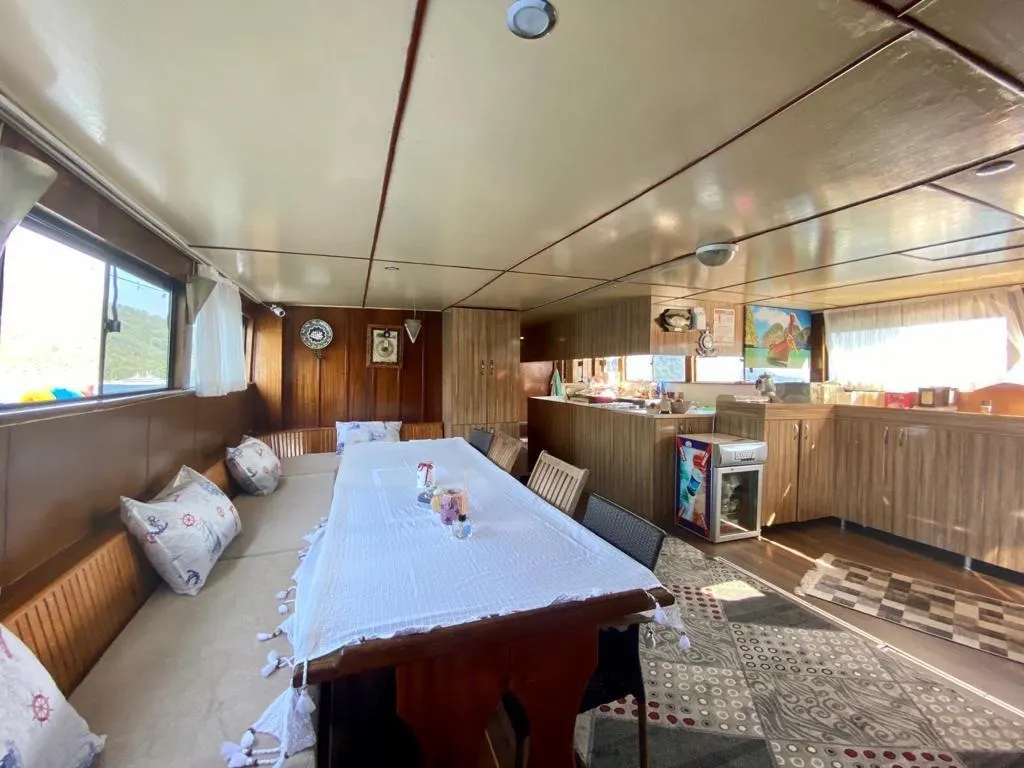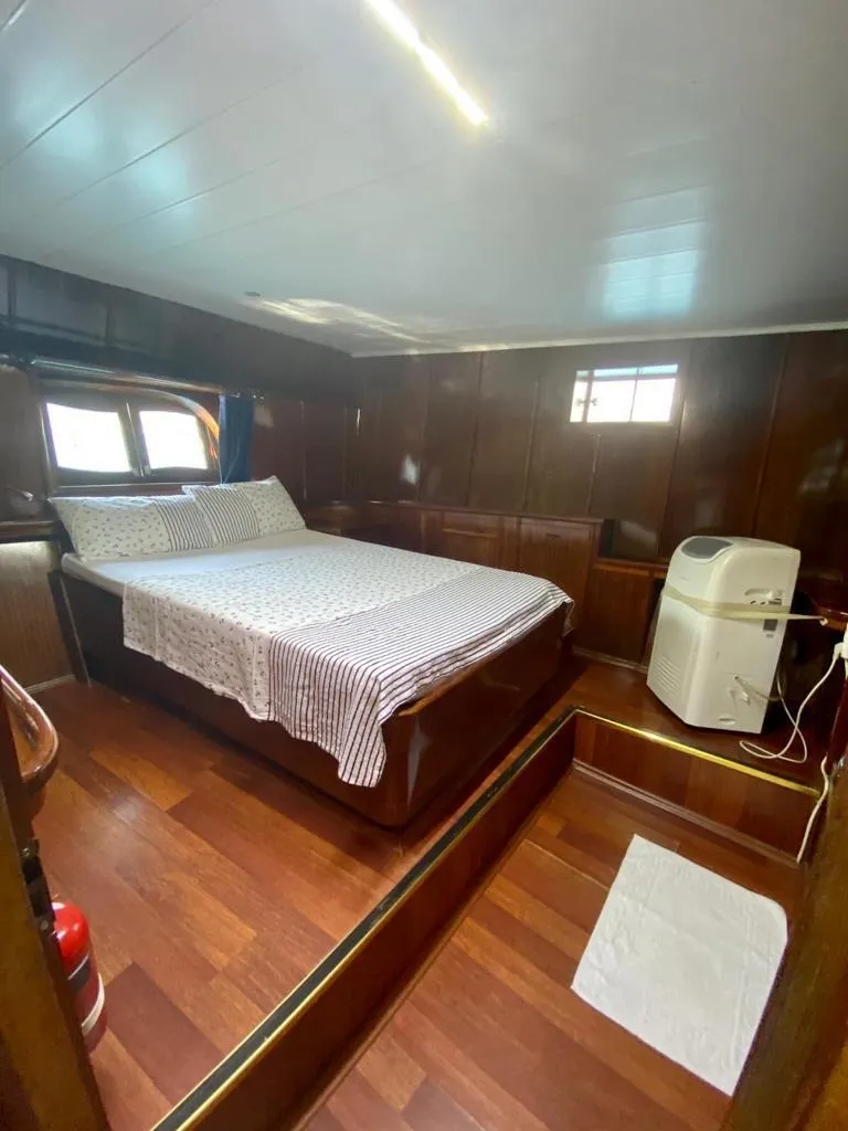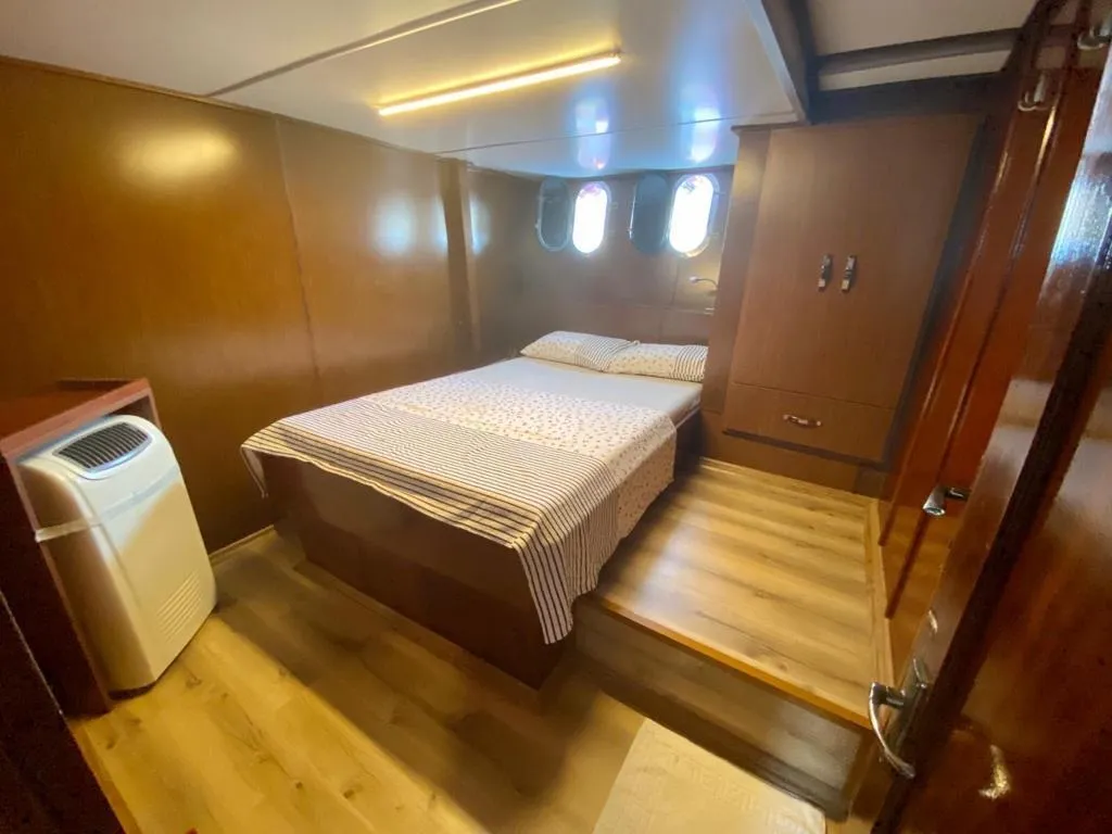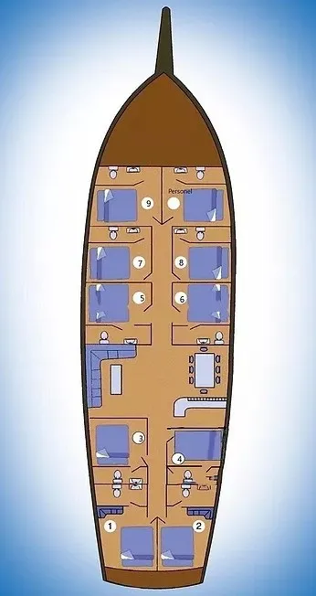 Fethiye’nin eşsiz koylarında huzur ve konforu bir araya getiren 27 metrelik ahşap guletimiz, 1998 yılında inşa edilip 2019’da yenilenmiştir. Sade tasarımıyla 8 double kabini bulunan teknemiz, Kekova rotasında ve Göcek Koyları'nda tekne tatili planlayan 16 kişiye kadar misafir gruplarını ağırlama kapasitesine sahiptir. Her kabinde özel duş ve wc bulunmakta olup, gün içinde 4 ila 6 saat klima hizmeti sunulmaktadır.