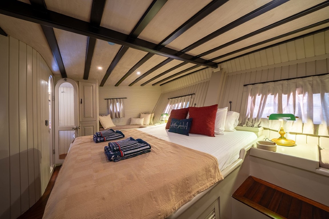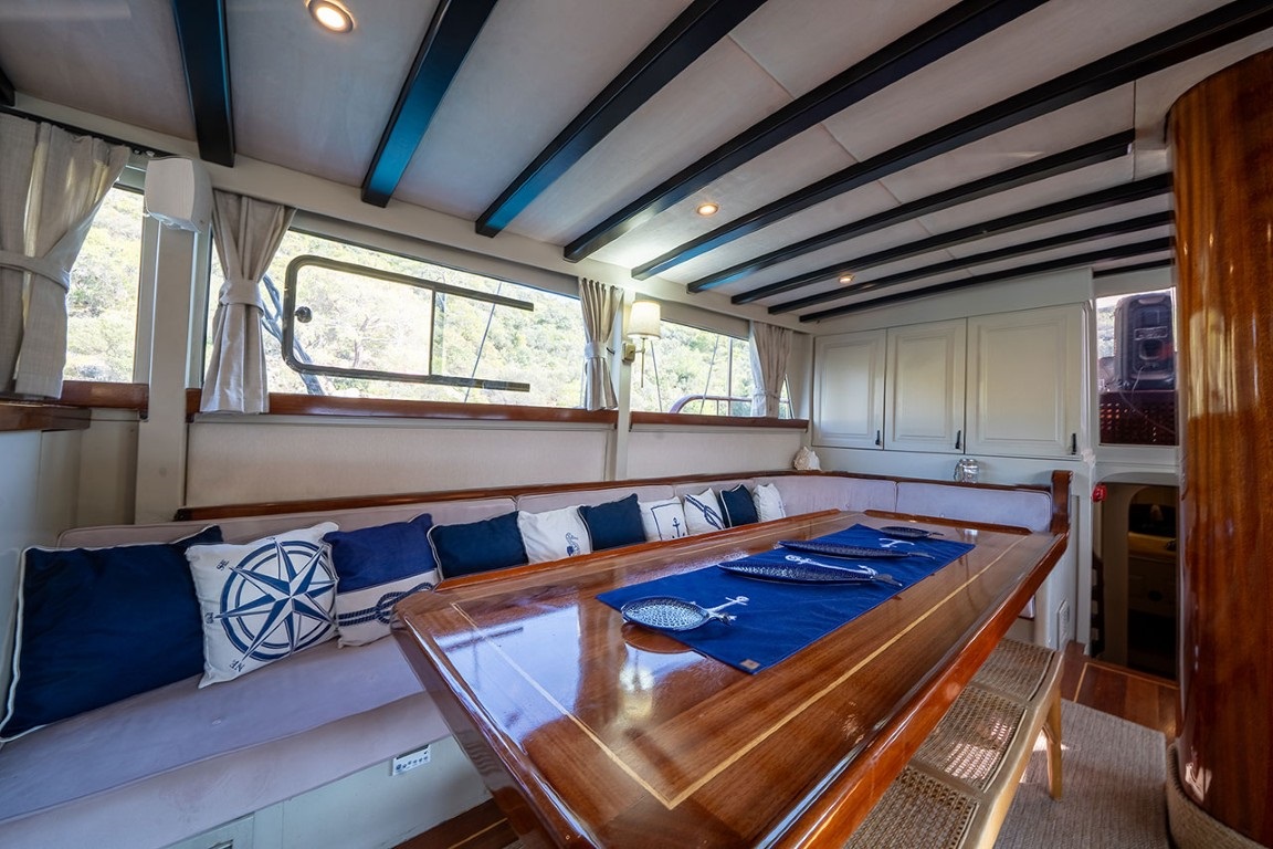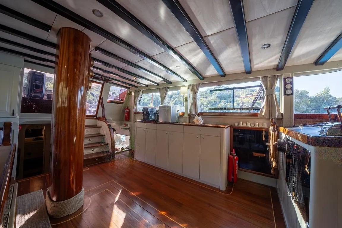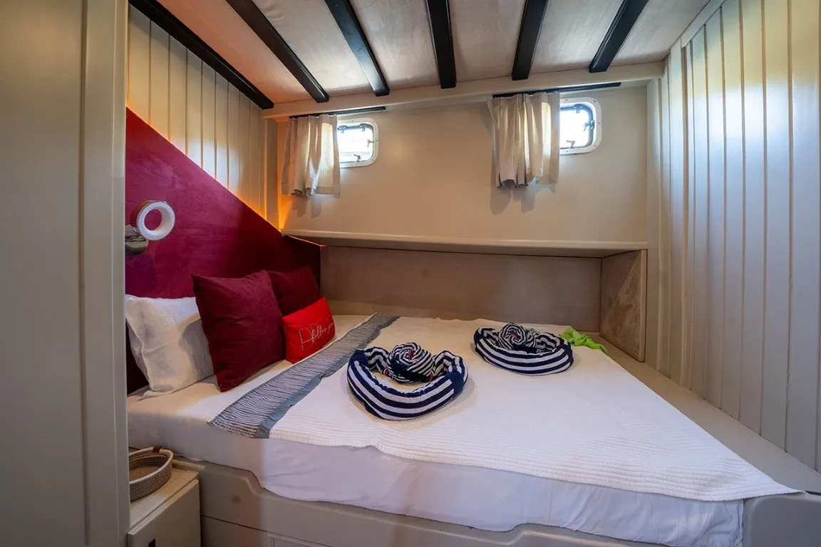 Ketch tipi guletin en güzel örneklerinden biri olan Ariella, hem estetik duruşu hem de fonksiyonelliğiyle dikkat çeker. Misafirlerimizin rahatlığı ön planda tutularak tasarlanan teknemiz, 2 master ve 3 double kabin olmak üzere toplamda 10 kişilik kapasiteye sahiptir. Her kabinde özel duşakabinli banyo, ev tipi tuvalet, saç kurutma makinesi ve gün içinde 8 - 12 saat hizmet veren çalışan klima sistemi mevcuttur.