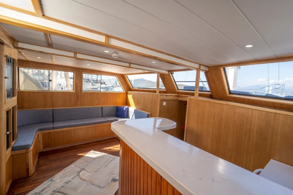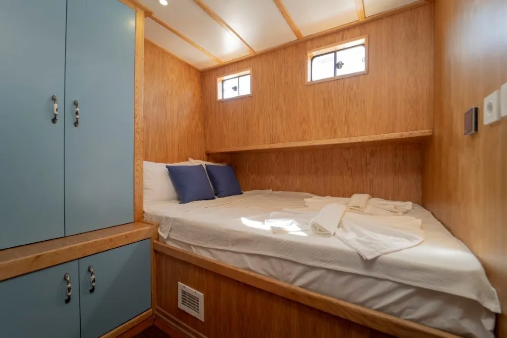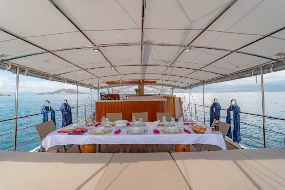 Fethiye gulet kiralama öne çıkan teknemizde, deneyimli 3 kişilik mürettebat (1 kaptan, 1 aşçı, 1 gemici) misafir memnuniyeti odaklı profesyonel hizmet sunmaktadır. Geniş yaşam alanları, rahat oturma grupları ve tam donanımlı mutfağı ile Bir Deniz Masalı, deniz ve güneşin keyfini en iyi şekilde çıkarabileceğiniz ideal bir yat kiralama seçeneğidir.