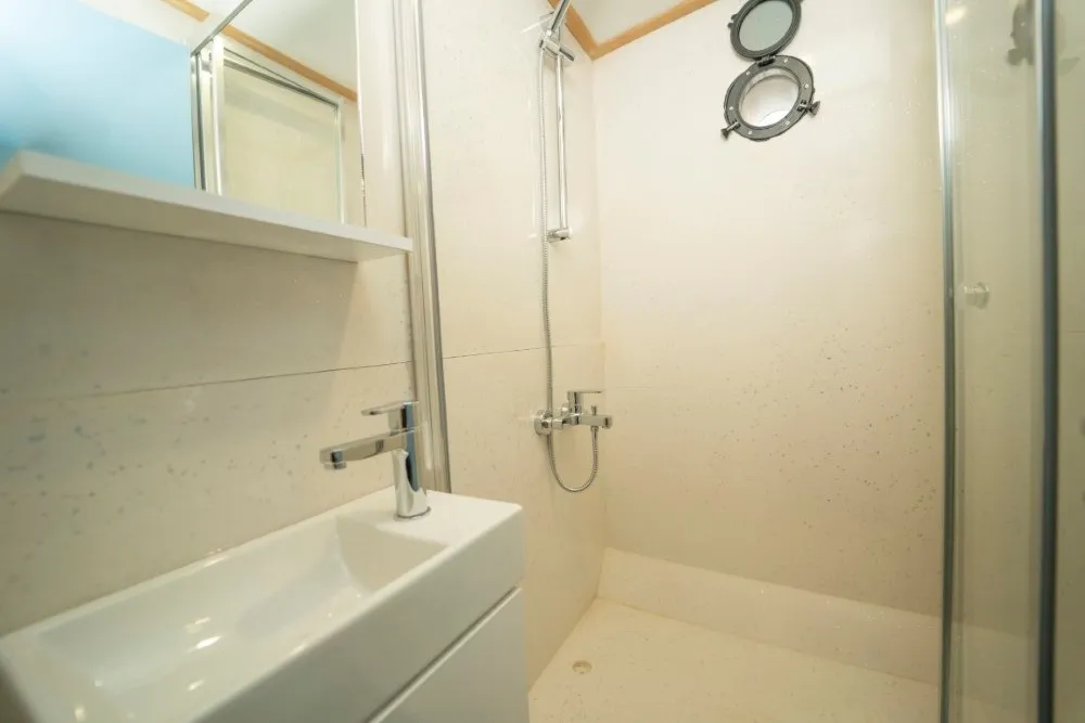 20 metre uzunluğa ve 6,4 metre genişliğe sahip Bir Deniz Masalı, 2 master ve 2 double kabin olmak üzere toplam 4 konforlu kabini ile 8 kişilik aile ve arkadaş gruplarına hizmet vermektedir. Her kabinde duş ünitesi, ev tipi wc ve gün içinde 4-6 saat hizmet veren klima sistemi bulunmaktadır.