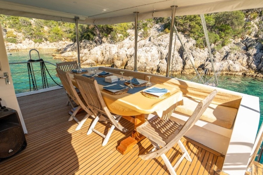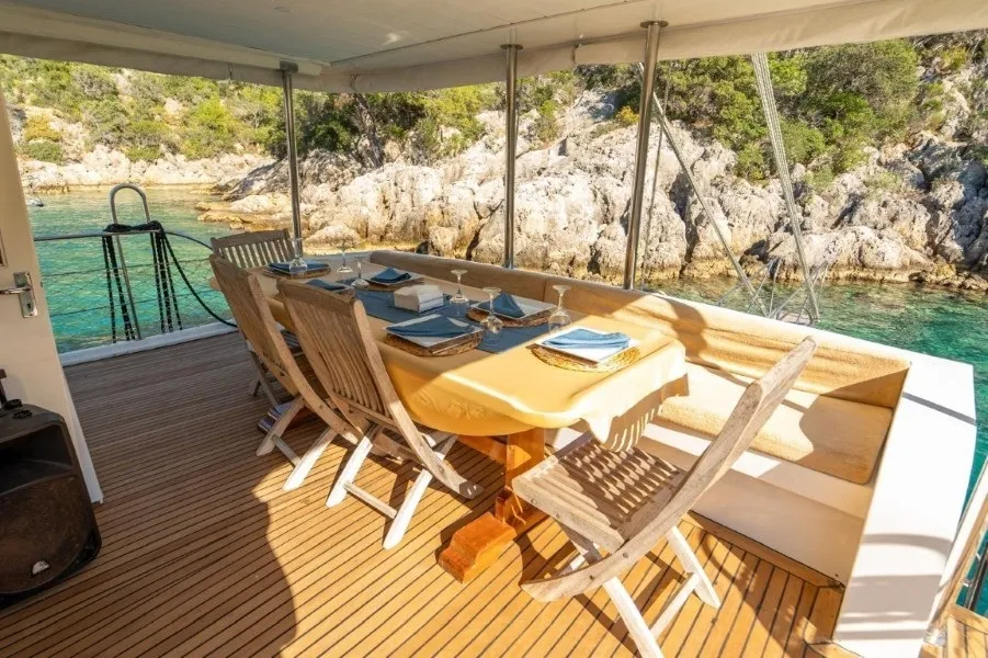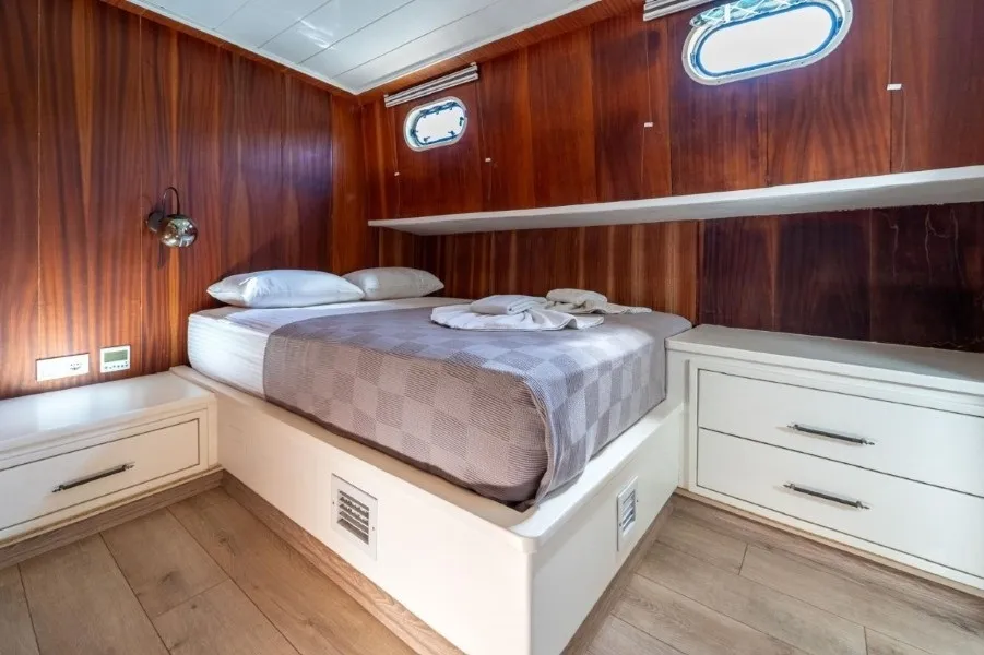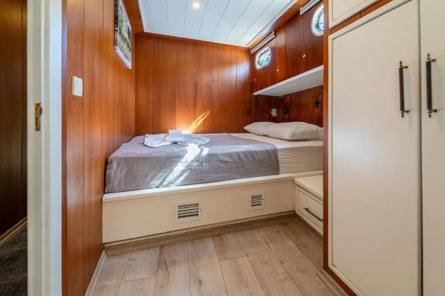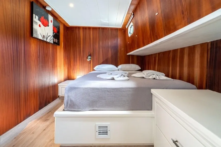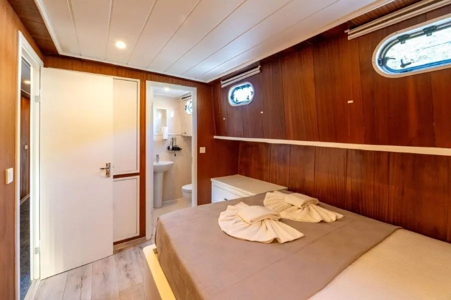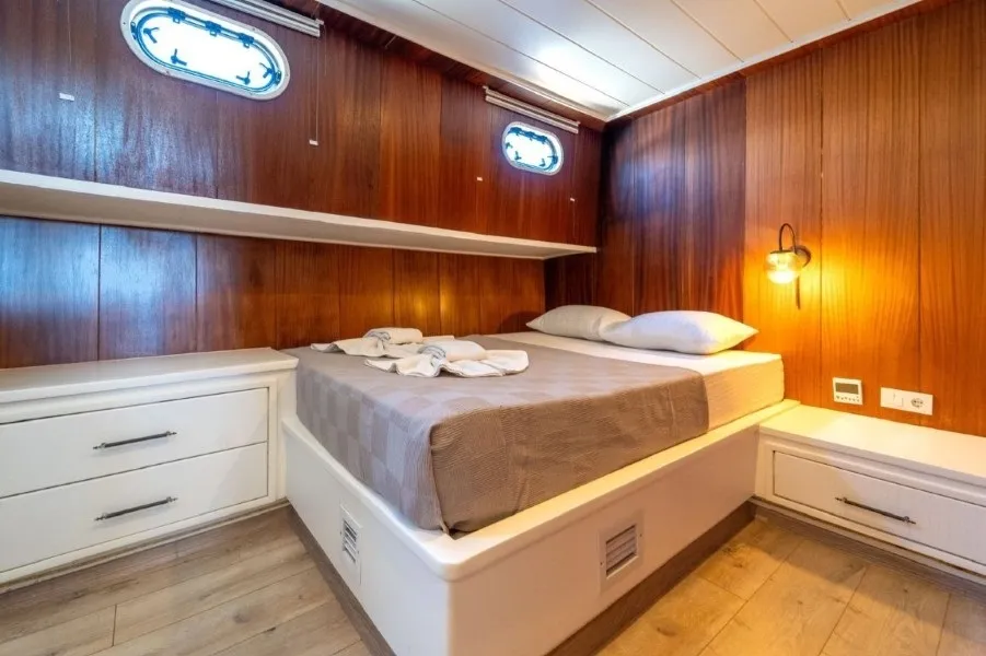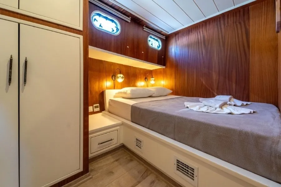 4 double kabini ile 8 kişiye kadar konaklama imkanı sağlayan Çağ Ay, her kabinde bulunan wc, duşakabin ve klima sayesinde maksimum konforu garanti eder. Deneyimli mürettebatımız 1 kaptan, 1 aşçı ve 1 gemiciden oluşmakta olup, tatiliniz boyunca profesyonel ve güler yüzlü hizmet sunmaktadır.
