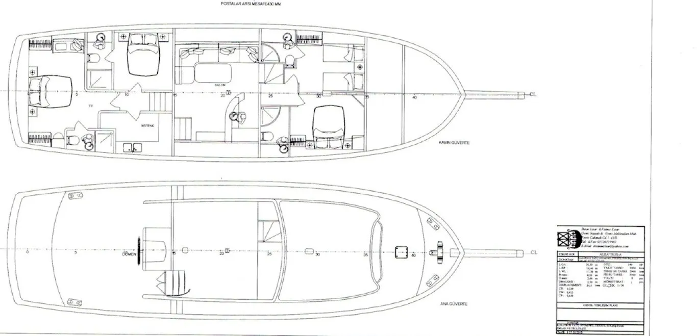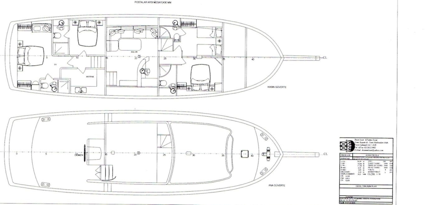 | Kabin Dağılımları | 2 Double, 1 Master, 1 Twin |