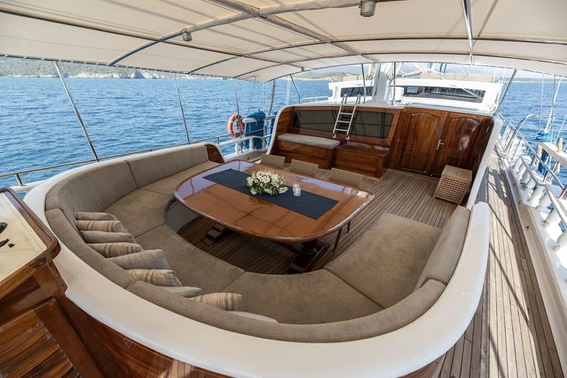 Teknemizin kıç güvertesinde geniş minderli oturma alanı, yemek masası ve keyifli akşamlar için ideal bir yemek alanı yer alır. Ön güvertede ise geniş yaşam alanı ve yeterli sayıda güneşlenme minderi ile gün boyu denizin tadını çıkarabileceğiniz bir alan sunulmaktadır.