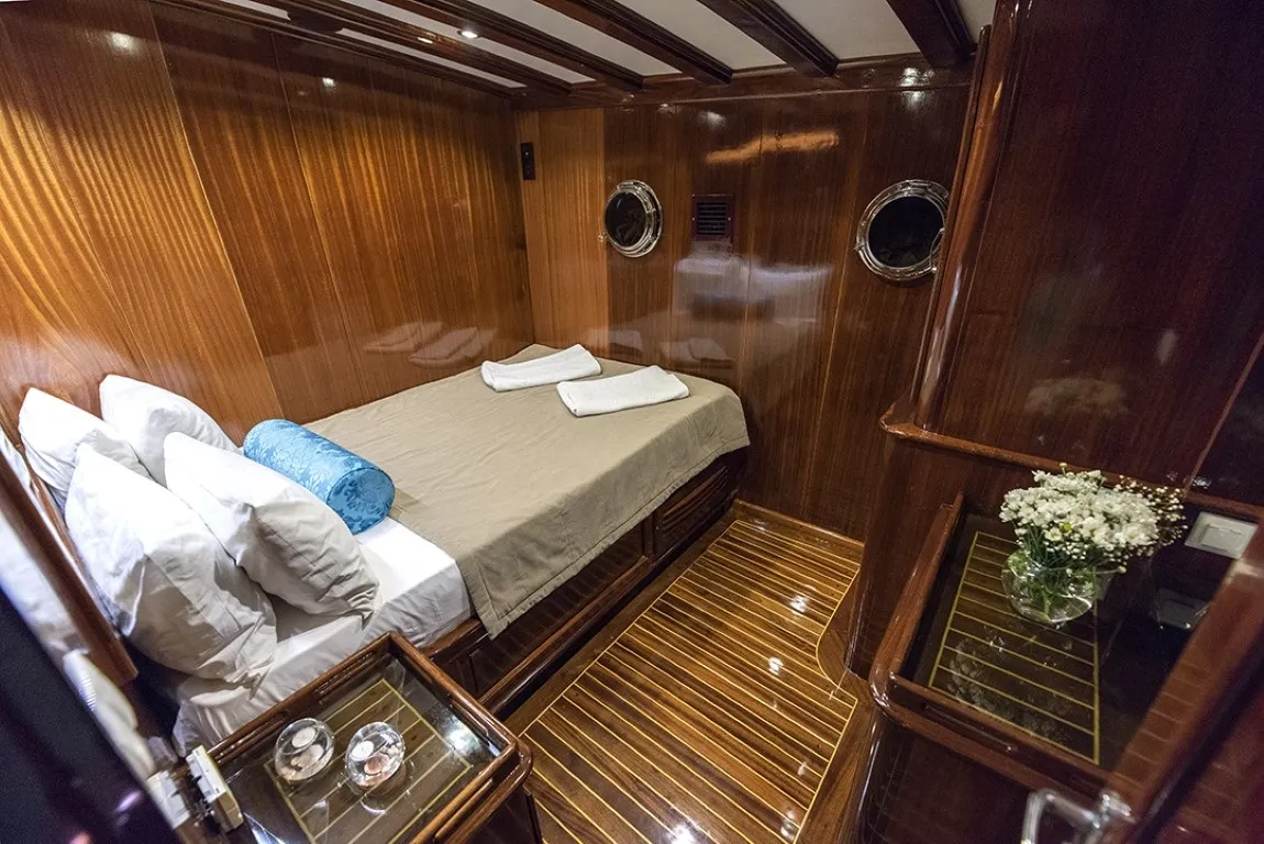 Duramaz guleti, 2 master, 2 double ve 2 twin olmak üzere toplam 6 kabinde 12 kişilik konuk kapasitesine sahiptir. Her kabin konforlu, ferah ve sade şıklıkla dekore edilmiş olup, misafirlerine ev sıcaklığında bir deneyim sunar.
