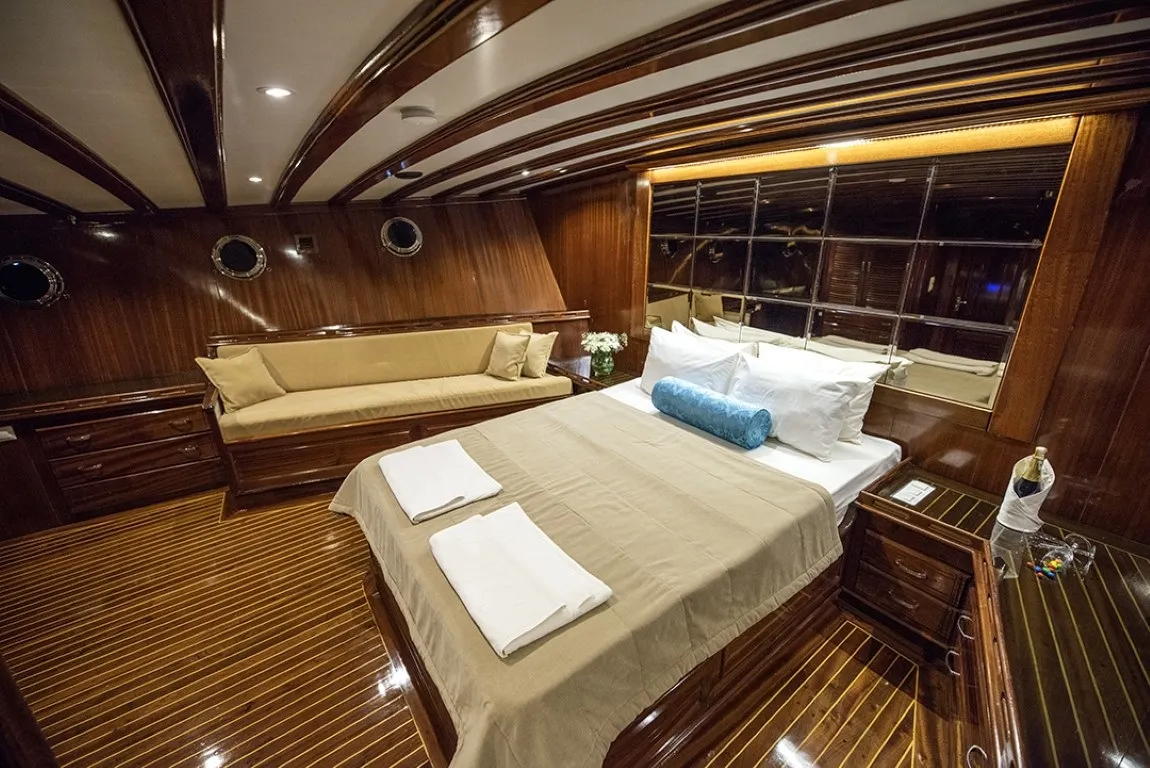 2005 yılında Fethiye Tersanesi’nde inşa edilen Duramaz Gulet, ketch tarzı yapısı ve zarif tasarımıyla Fethiye lüks tekne kiralama seçenekleri arasında öne çıkan özel bir gulettir. 2020 yılında titizlikle yenilenerek bugünkü modern ve şık görünümüne kavuşan teknemiz, hem yapısı hem sunduğu hizmet kalitesiyle lüks mavi yolculuk arayanlar için ideal bir seçenektir.
