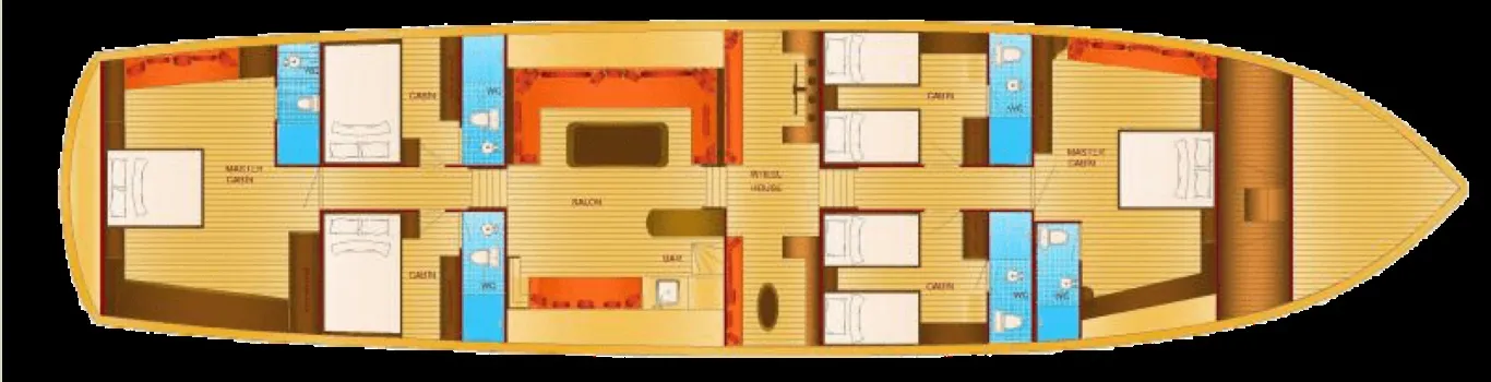 | Kabin Dağılımları | 2 Master, 2 Double, 2 Twin |