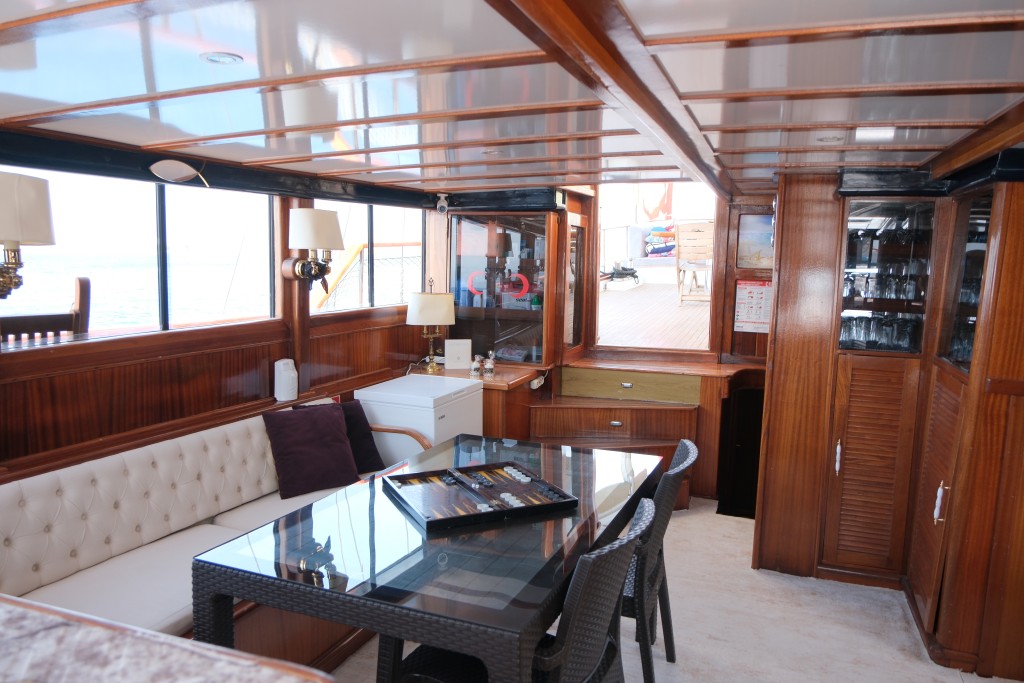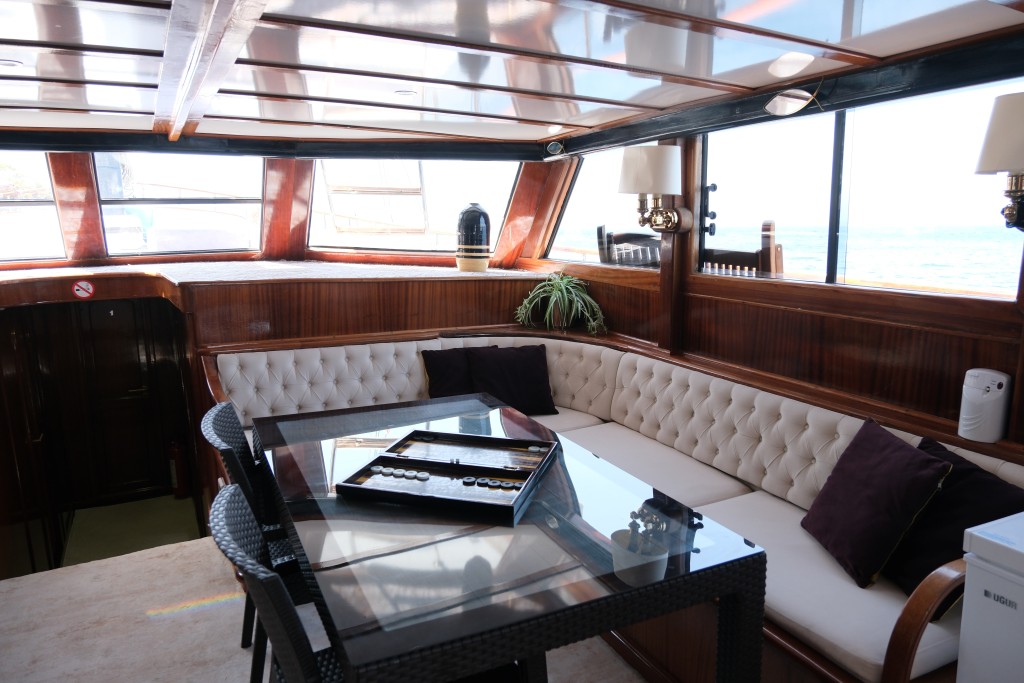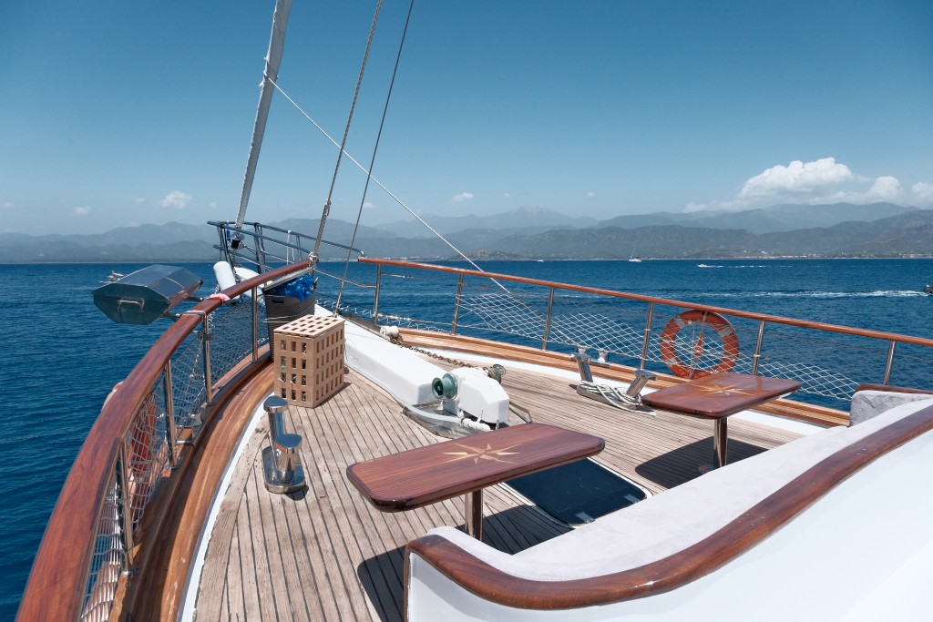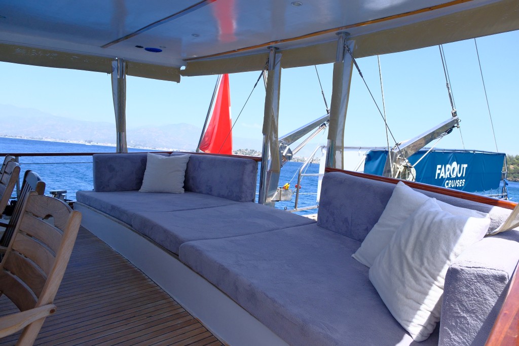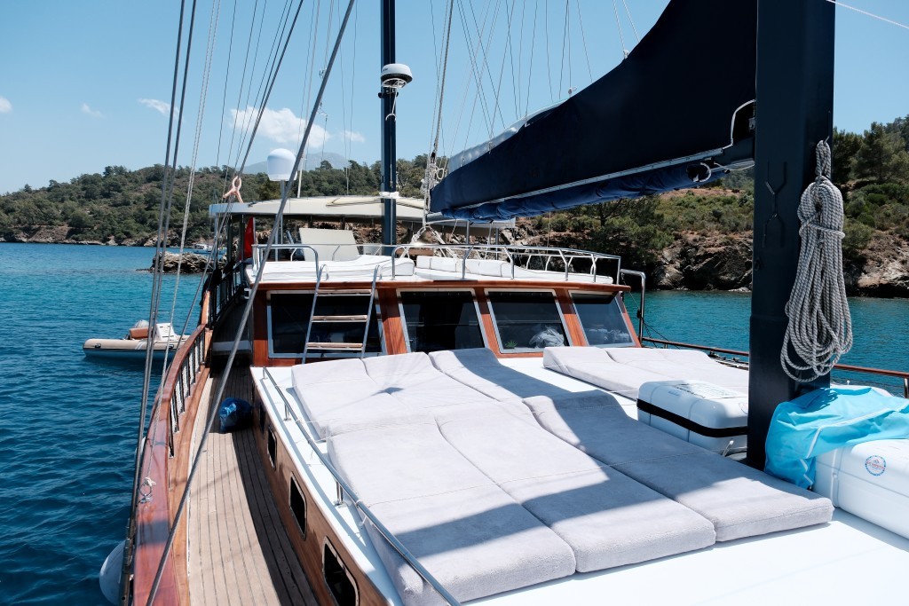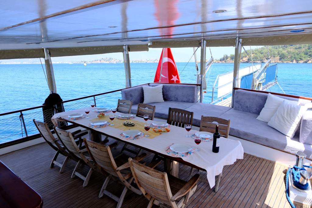 Lüks guletimizin arka güvertesinde, Türk mutfağının eşsiz lezzetlerini tadabileceğiniz geniş yemek masası ve hem açık hem kapalı dinlenme alanları bulunmaktadır. 3 kişilik deneyimli ve güler yüzlü mürettebatımız, tatiliniz boyunca her detayla ilgilenerek size kusursuz bir hizmet sunmaktadır.