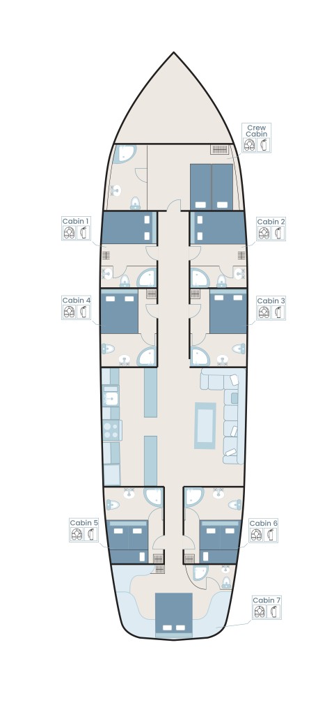 Toplam 7 kabiniyle 14 kişilik aile ve arkadaş gruplarını ağırlayabilen Esmeralda, çocuklu misafirler için 16 kişiye kadar konaklama imkanı sunmaktadır. Her kabinde ebeveyn banyosu ve gün içinde 4-6 saat kullanılabilen klima ile donatılan yatımız, konforunuz için özel olarak tasarlanmıştır.