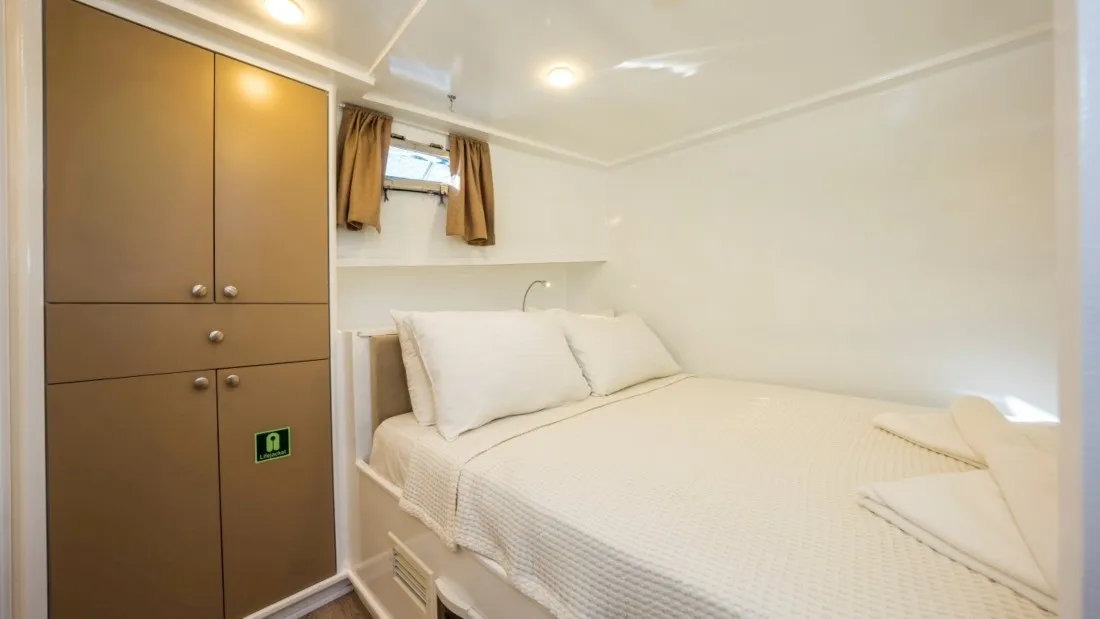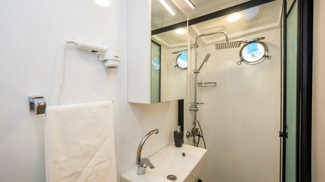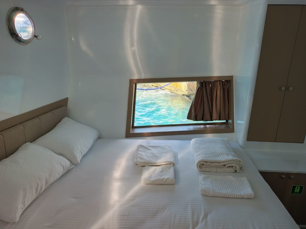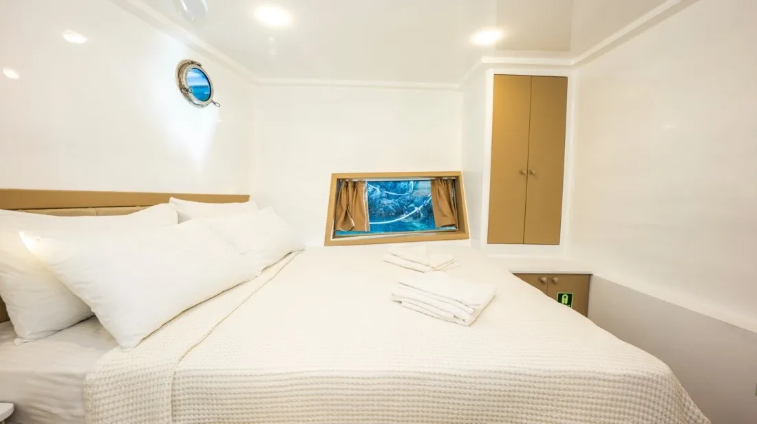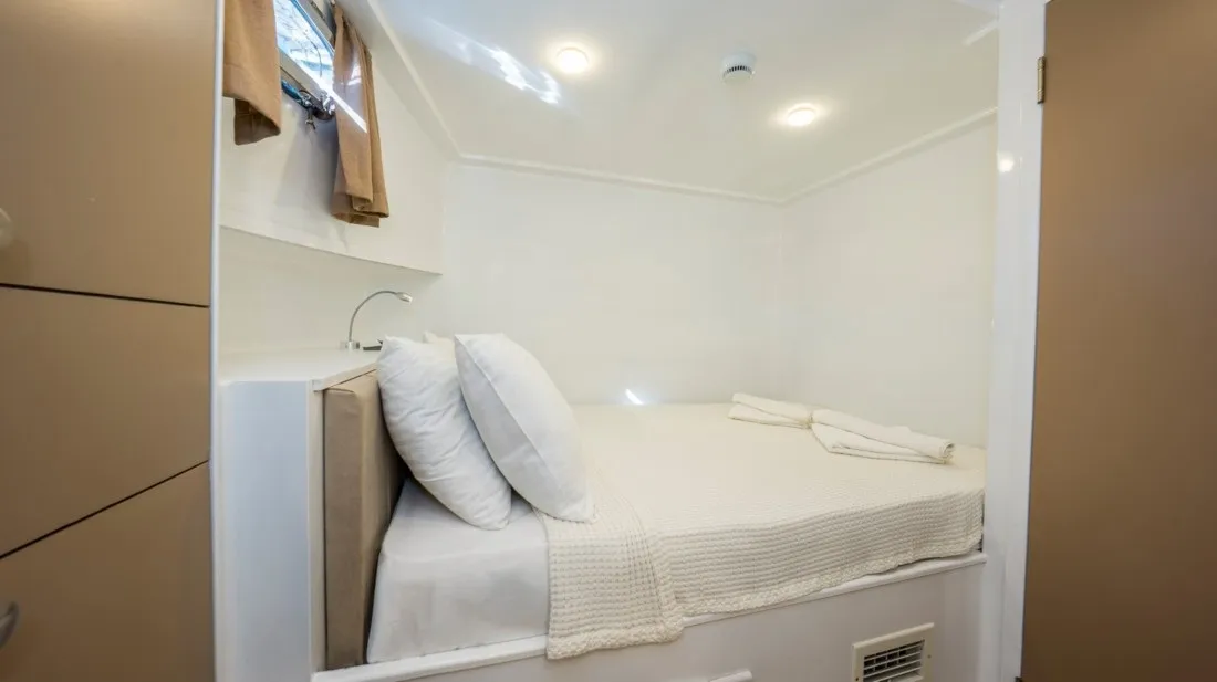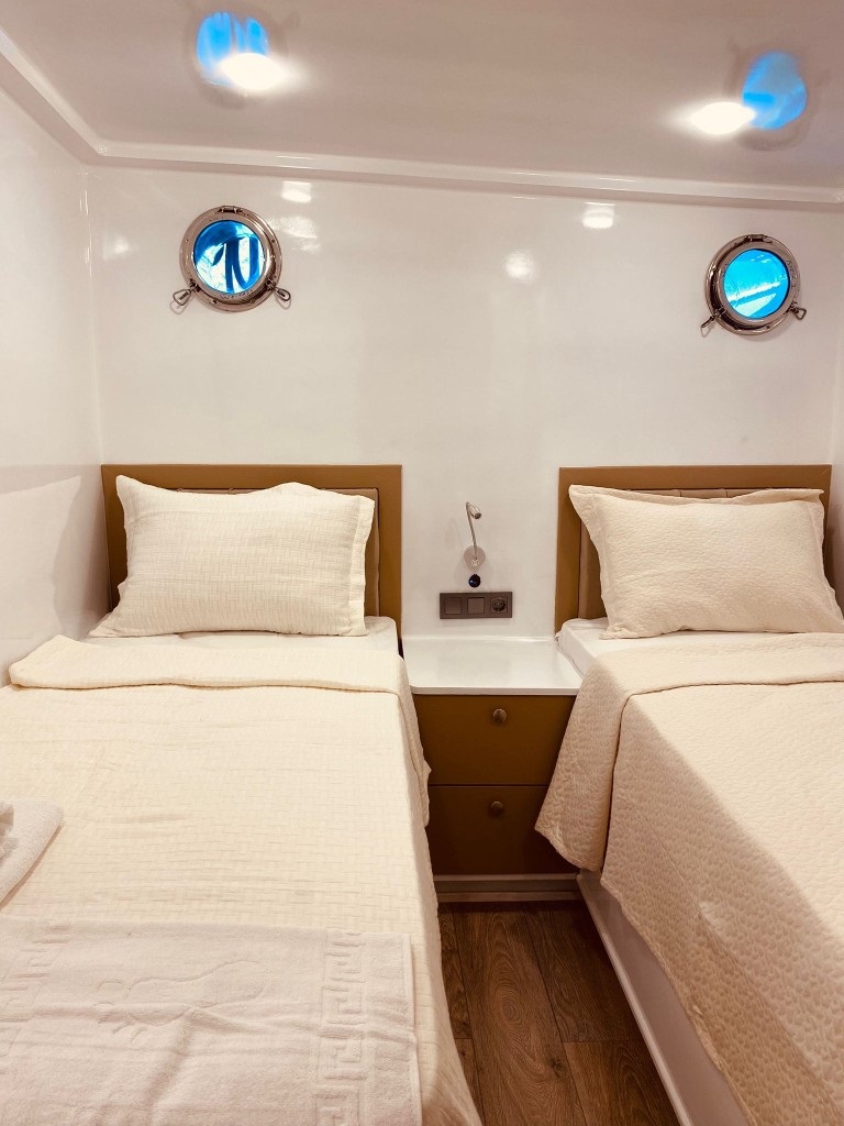 2025 yılında havuz haline getirilip neredeyse sıfırdan inşasına başlanan 10 kabinli guletimiz modern dizaynı ve personel kalitesi ile dikket çekmektedir. 8 çift kişilik kabin ve 2 kabinde ayrı yataklı tekli yataklar ile 20 kişiye kadar mavi yolculuk beklentilerini Fethiye başlangıçlı olarak düşünen misafirlerimize hizmet vermektedir. 4 personelimizin görev aldığı guletimizde 6-8 saat klima hizmeti verilir fakat beklenti dahilinde klima kullanım süresini tüm gece olarak da ek ücret ödeyerek gerçekleştireilirsiniz.
