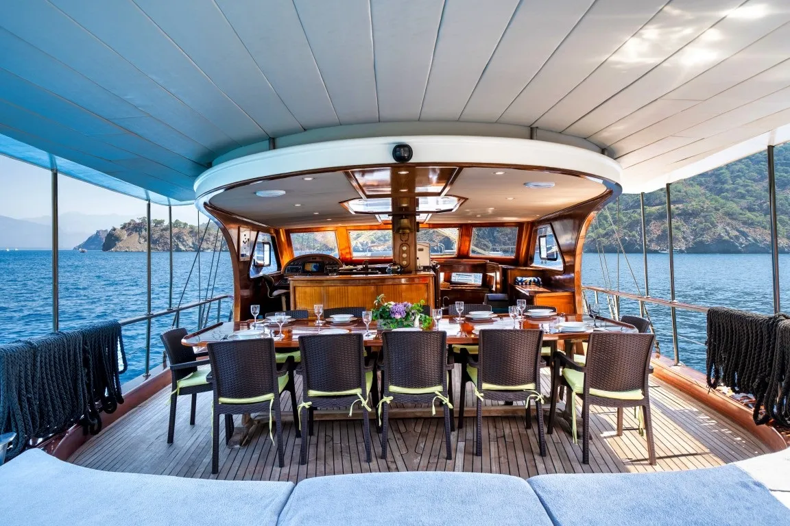Yelken donanımı sayesinde, denizin ve rüzgarın eşsiz uyumunu hissederek keyifli bir seyir yapabilir, mavi yolculuğunuz boyunca unutulmaz anılar biriktirebilirsiniz. Usta aşçımızın hazırladığı özel lezzetler, tatilinize benzersiz bir tat katacaktır.