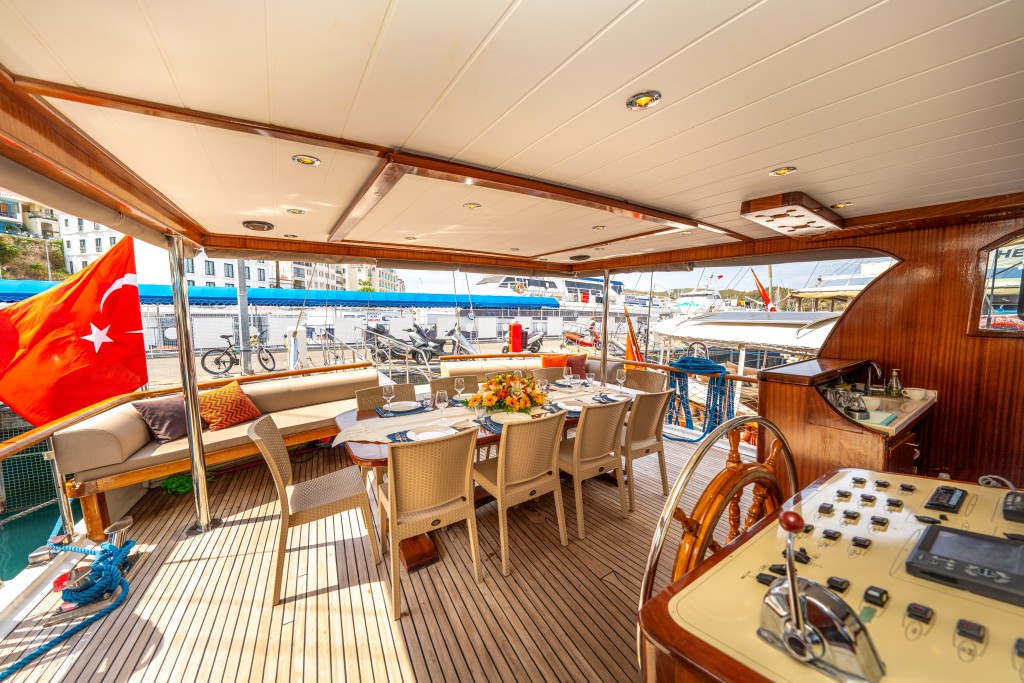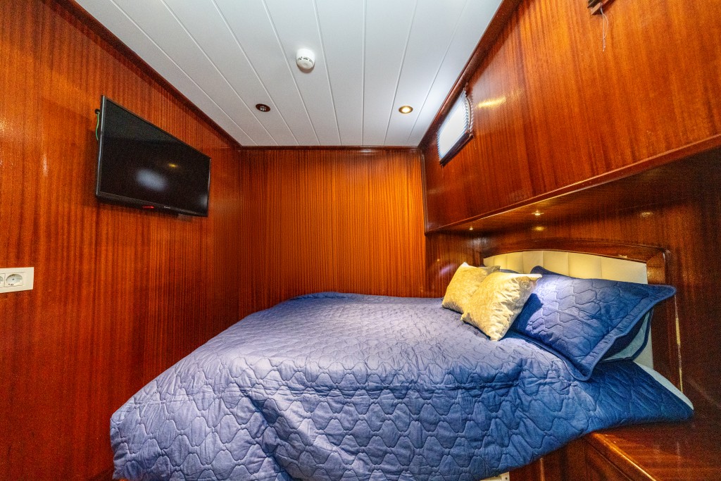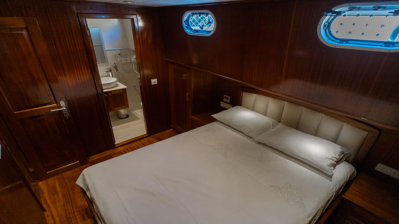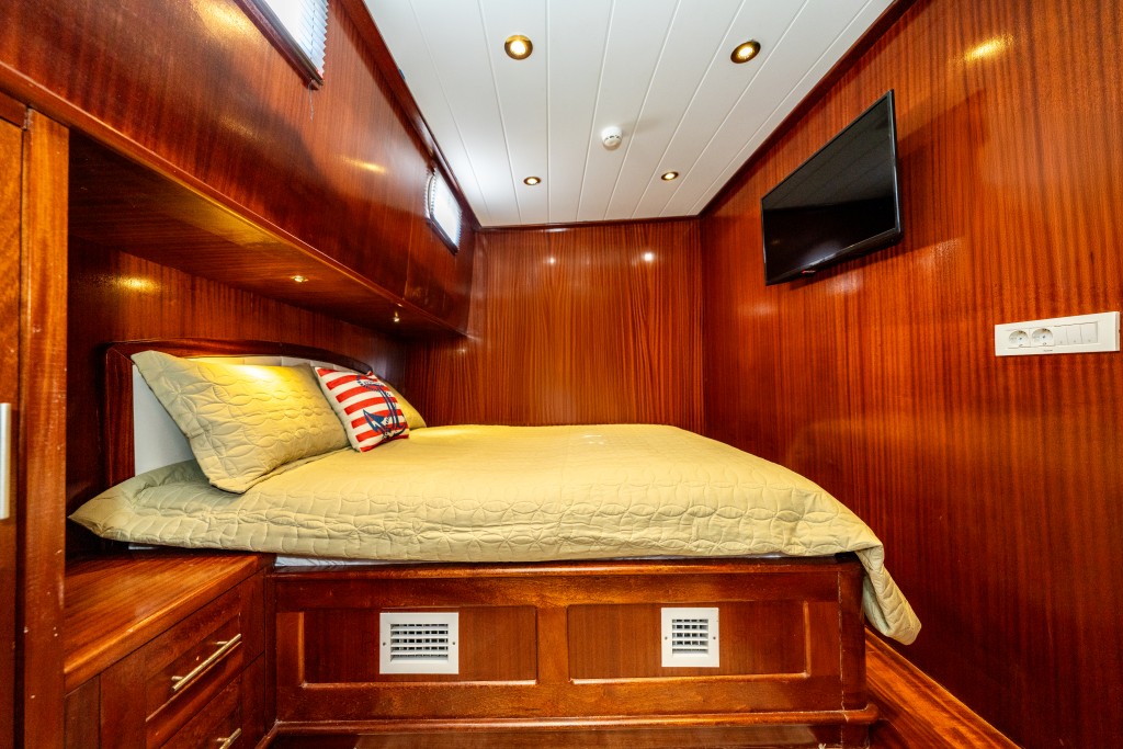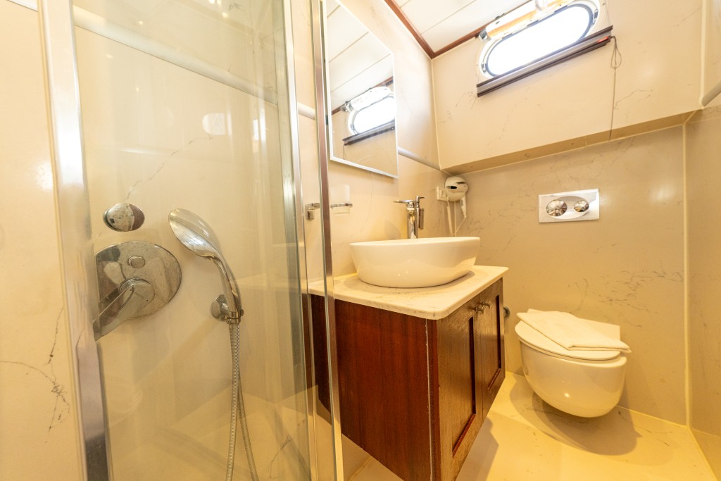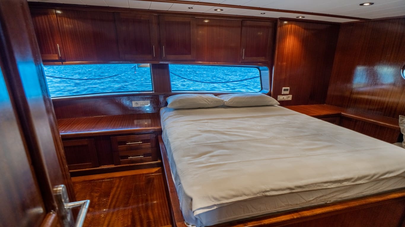 2022 yapımı, 21 metre uzunluğa ve 6,5 metre genişliğe sahip lüks guletimiz Kasapoğlu 6, Fethiye tekne kiralama kategorisinde misafirlerimize sunulan en konforlu seçeneklerden biridir. 2 master ve 2 double kabiniyle toplam 10 kişilik yasal kapasiteye sahip olan teknemiz, her kabinde ev tipi wc, şık duşakabin, klima ve saç kurutma makinesi ile donatılmıştır.