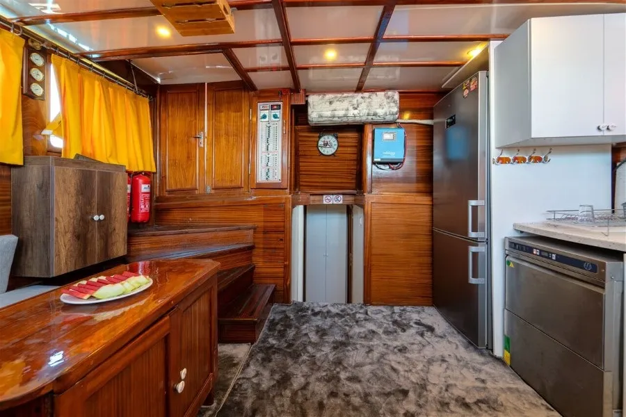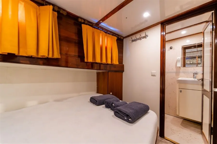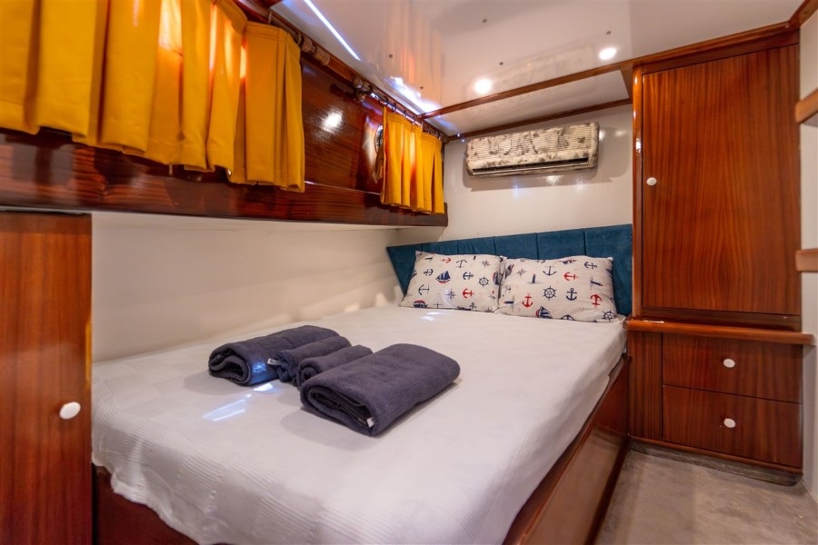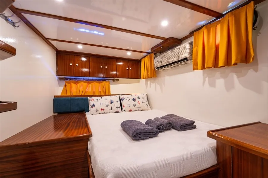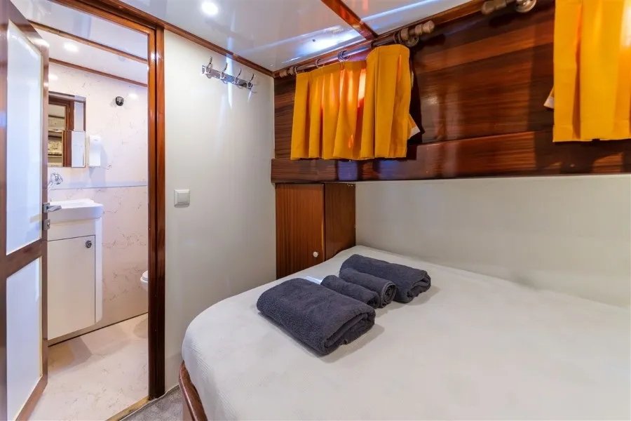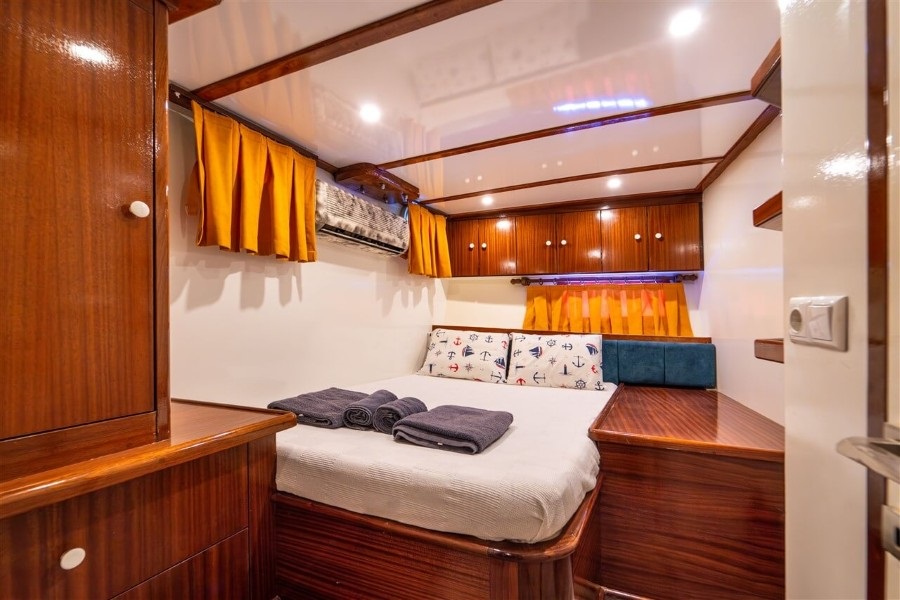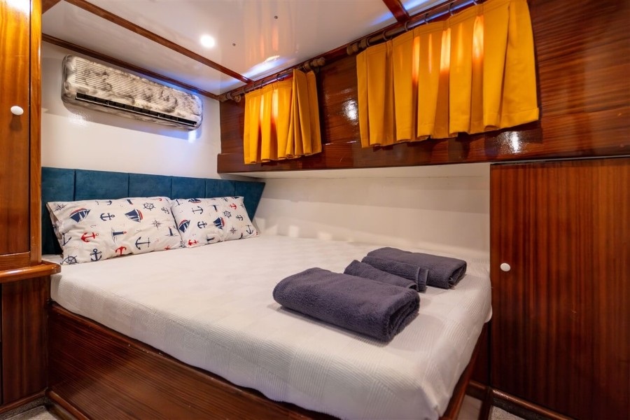 Lycian Sirius, 4 double kabiniyle aileler ve arkadaş grupları için ferah ve rahat bir konaklama imkanı sunar. Her kabinde klima bulunmakta olup, gün içinde 4-6 saat klima kullanımı ile sıcak yaz günlerinde bile serin ve keyifli bir ortam sağlanmaktadır. Fethiye tekne kiralama hizmetinde 1 kaptan, 1 aşçı ve 1 gemiciden oluşan deneyimli mürettebatımız, seyahatiniz boyunca ihtiyaçlarınızı karşılayarak konforlu bir mavi yolculuk deneyimi yaşamanızı garanti eder.