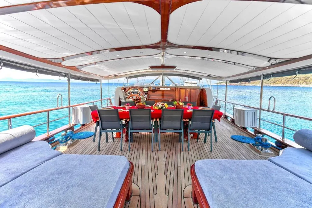 2008 yılında denize indirilen lüks plus sınıf teknemiz Mehmet Ayaz, 2019 yılında kapsamlı bir yenileme sürecinden geçerek bugünkü modern ve zarif görünümüne kavuşmuştur. Her sezon özenle yapılan bakımları sayesinde, ilk günkü kondisyonunu koruyarak misafirlerine güvenli ve konforlu bir deneyim sunmaktadır.