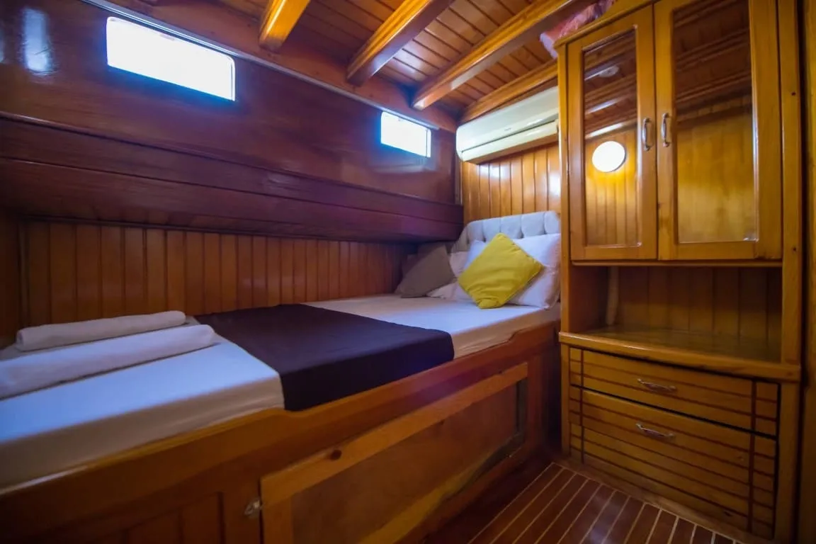 Mozaik Gulet, Göcek tekne kiralama seçenekleri arasında öne çıkan ve ekonomik tekne kiralama hizmeti sunan mükemmel bir tercihtir. 26 metre uzunluğunda ve 7 metre genişliğinde olan teknemiz, 8 double kabiniyle toplamda 16 kişiye kadar misafir ağırlayabilmektedir. 2002 yılında inşa edilen ve 2020 yılında yenilenen Mozaik, modern kabinler, geniş güverte ve yenilenen iç mekanlarıyla size konforlu bir yolculuk imkanı sağlar.