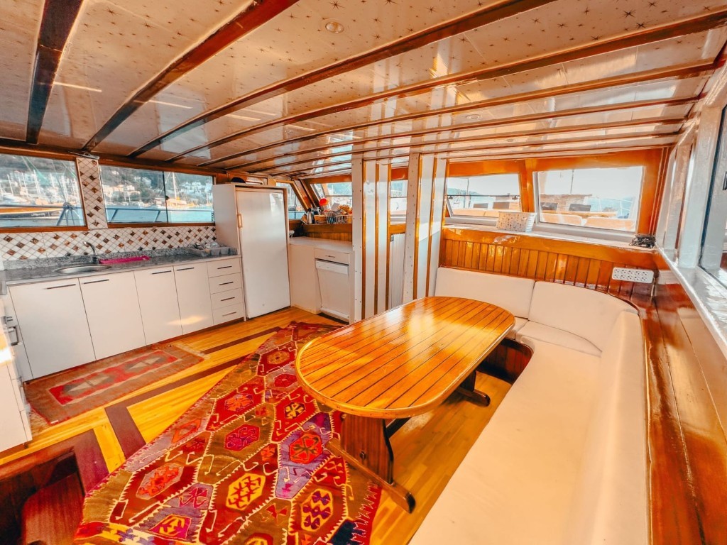 Mavi yolculuğunuz süresince, tam donanımlı mutfağımızda hazırlanan lezzetli yemekleri güvertede veya salondaki şık sofralarımızda tadabilirsiniz. Güneşlenme minderlerinde dinlenerek Göcek Koyları'nın eşsiz manzarası eşliğinde huzur dolu bir tatilin keyfini çıkarabilirsiniz. Prenses Ela Gulet ile tatiliniz boyunca sizlere eşlik eden 3 kişilik mürettebat, yemek, temizlik, bakım ve günlük organizasyonları titizlikle yönetmektedir.