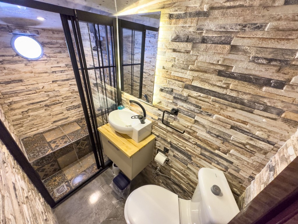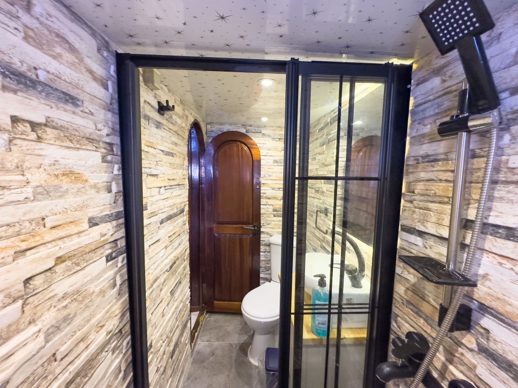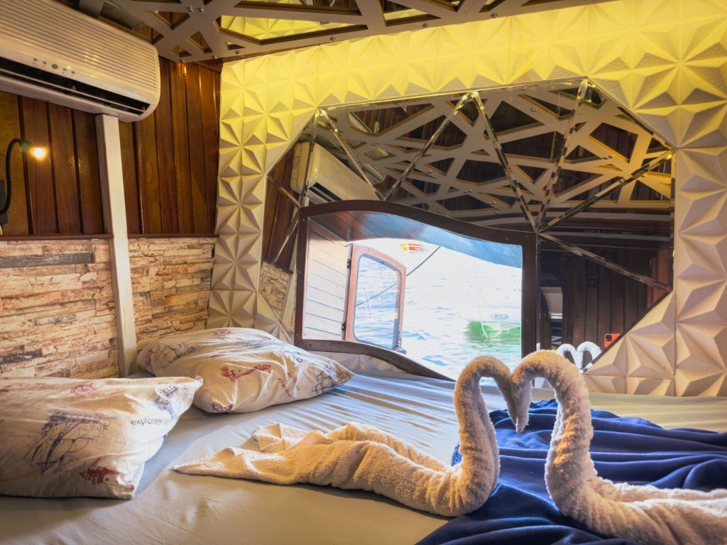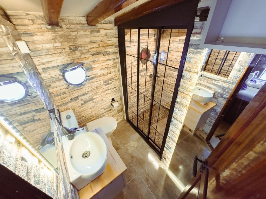Toplamda 8 kabini bulunan teknemizde, 4 triple ve 4 double kabin olmak üzere 16 misafir ağırlanabilmektedir. Tüm kabinlerde klima, duş ve wc bulunarak misafirlerin rahatlığı ön planda tutulmuştur. Lüks kategorisindeki teknemiz, geniş ve ferah bir salon ile kullanışlı bir güverteye sahiptir.