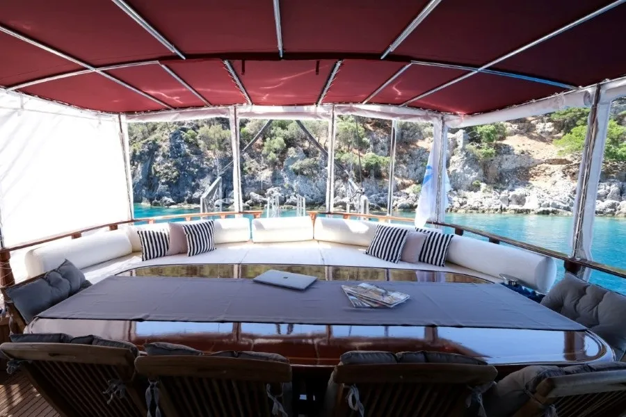 Fethiye Limanından yola çıkan ve deniz severlere özel olarak sunulan Pronto Blue, 26 metre uzunluğunda ve 6.1 metre genişliğinde, lüks gulet kiralama segmentinde öne çıkan prestijli bir yatıdır. 2006 yılında inşa edilen teknemiz, 2021 yılında kapsamlı bir yenileme ile modern konfor ve şıklığı bir araya getirmiştir.