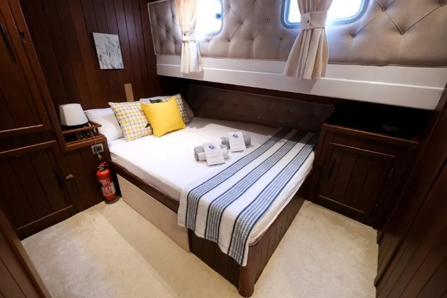 Pronto Blue, 1 master, 2 double ve 1 twin olmak üzere toplam 4 geniş ve ferah kabiniyle 9 kişiye kadar konforlu konaklama imkanı sağlamaktadır. Tüm kabinlerde etkin şekilde çalışan klima, özel banyolar ve kullanışlı donanımlar misafirlerin rahatlığı için titizlikle hazırlanmıştır.
