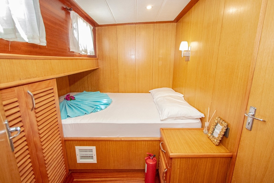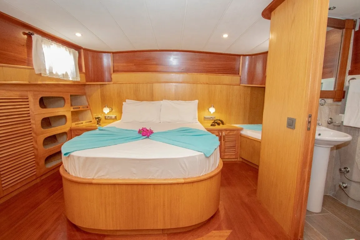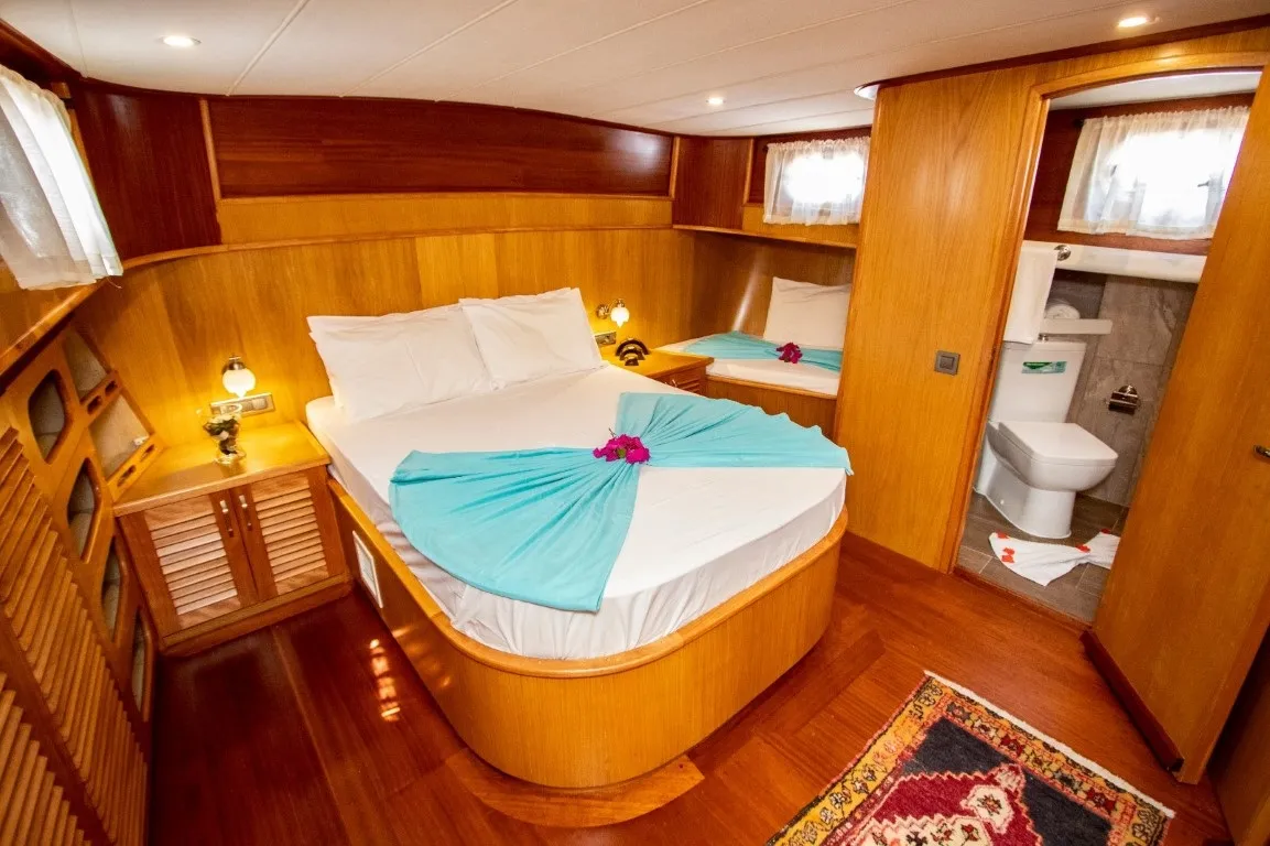2016 yapımı lüks ahşap yatımız Queen Anna Gulet, 16 metre uzunluğu ve zarif tasarımıyla mavi yolculuk severler için konforlu bir tatil deneyimi sunmaktadır. Teknemiz 3 kabinli tekne seçenekleri arasında yer almakta olup, 1 master ve 2 double kabini ile toplamda 6 misafir ağırlayabilecek kapasiteye sahiptir. Mavi tur boyunca misafirlerimize hizmet sunan 2 kişilik deneyimli mürettebatımız, isteğe bağlı olarak 3 kişiye çıkarılabilmektedir. Özellikle şefli tekne turu tercih eden misafirlerimiz için teknemiz, mutfak kalitesi ve özenli sunumlarıyla yüksek memnuniyet oranına sahiptir. Her yıl düzenli olarak bakımı yapılan teknemiz, ilk günkü kondisyonunu korumakta ve modern detaylarla donatılmıştır. Ön güvertede güneşlenme minderleri, arka güvertede ise keyifli yemekler için masa ve rahat oturma alanları bulunmaktadır. Teknede sinevizyon ile film keyfi yapabilir, masa oyunları ile vakit geçirebilir, bluetooth bağlantılı ses sistemi ve sınırsız internet ile eğlenceli anlar yaşayabilirsiniz. Tüm detaylar ve rezervasyon için maviyolculuk.org satış temsilcimizle iletişime geçebilirsiniz.