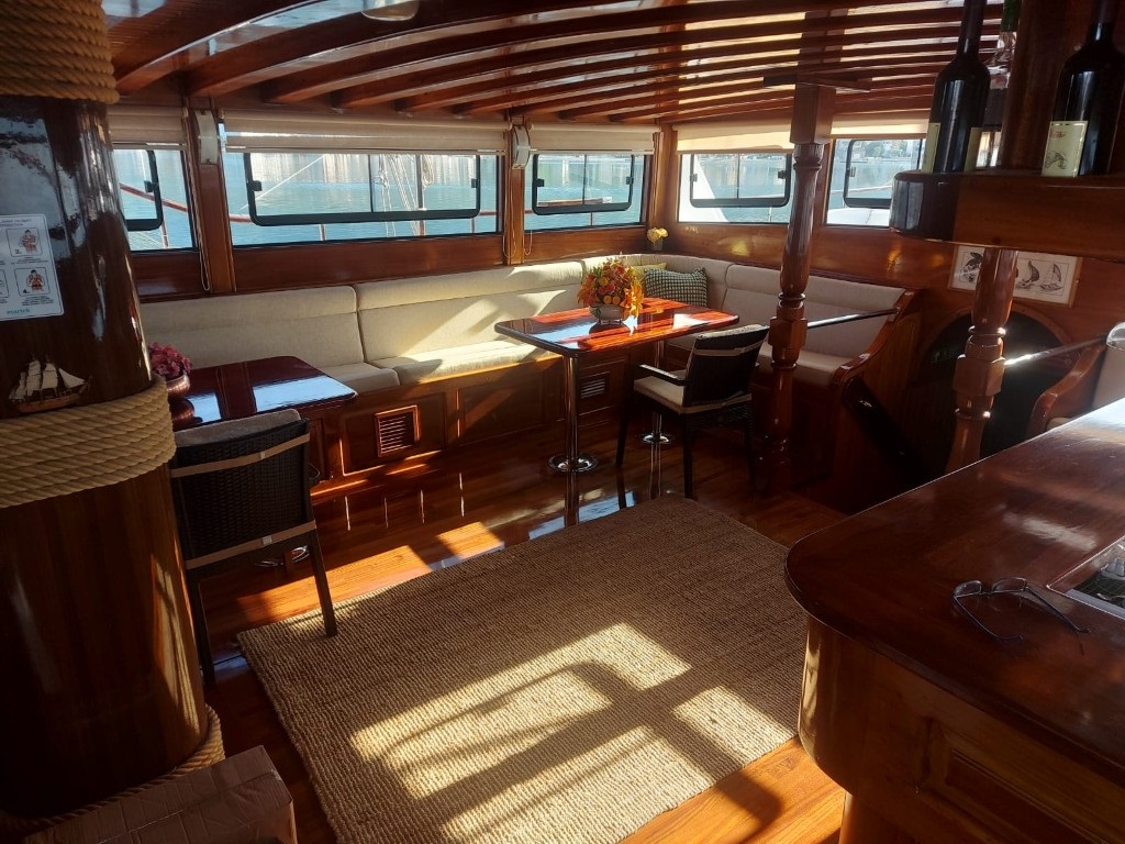 Teknemiz, geniş yaşam alanlarıyla gulet kiralama seçeneklerinden ayrılmaktadır. Sadri Usta 1, arka kısmında rahat ve konforlu bir oturma grubu, 16 kişilik yemek masası ve ön kısımda deniz manzarası eşliğinde içeceklerinizi keyifle yudumlayabileceğiniz bir oturma alanı sunmaktadır. Ayrıca her misafir için yeterli miktarda güneşlenme minderleri mevcuttur.