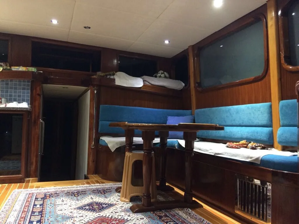 Antalya - Kemer çıkışlı Kekova, Kalkan, Kaş, Ölüdeniz mavi tur rotasında ekonomik gulet kiralama hizmeti veren teknemiz, 24 metre uzunluğunda ve 5.8 metre genişliğinde olup, 14 kişilik misafir gruplarını ağırlayabilmektedir. Konforlu ve ferah 7 double kabini, özel banyo, wc ve klima donanımları ile misafirlerimize rahat bir tatil ortamı sunmaktadır.