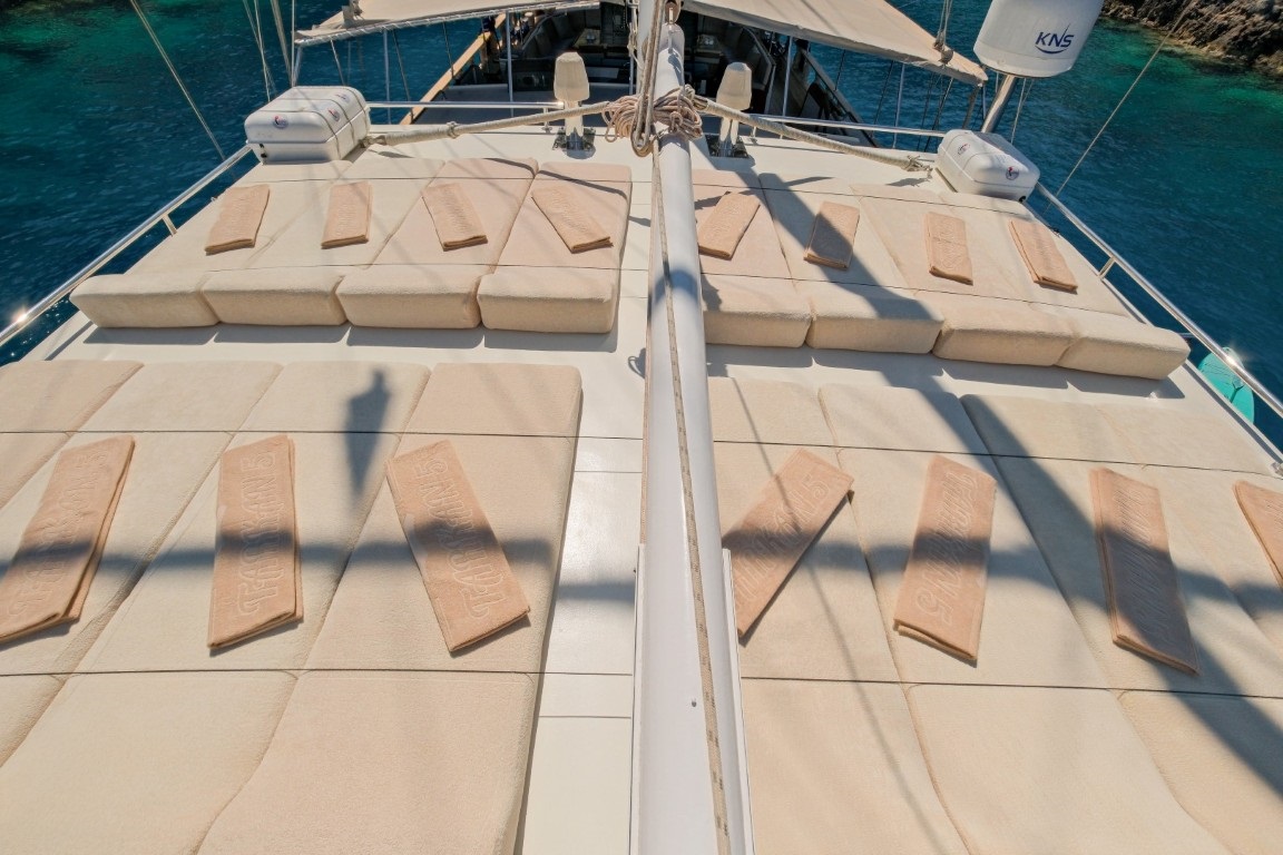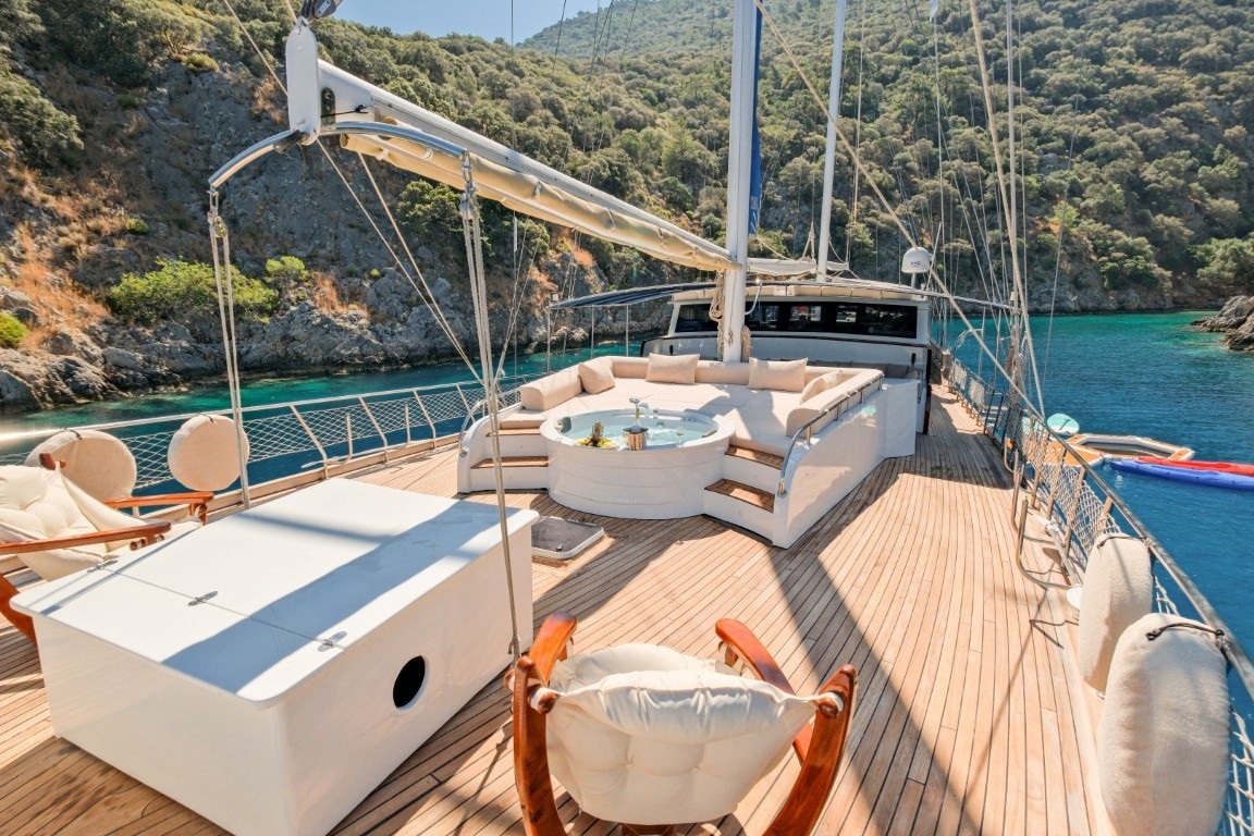 Geniş ve fonksiyonel güverte alanları, açık havada vakit geçirmek isteyen misafirler için özel olarak tasarlanmıştır. Güneşlenme minderleri, güneş tenteleri, güvertede duş alanı ve deniz merdiveni ile deniz keyfi her an ulaşılabilir durumdadır. Aktif yelken donanımı sayesinde klasik ketch seyri deneyimi yaşamak isteyen misafirler için de ayrıcalıklı bir seçenek sunulmaktadır.