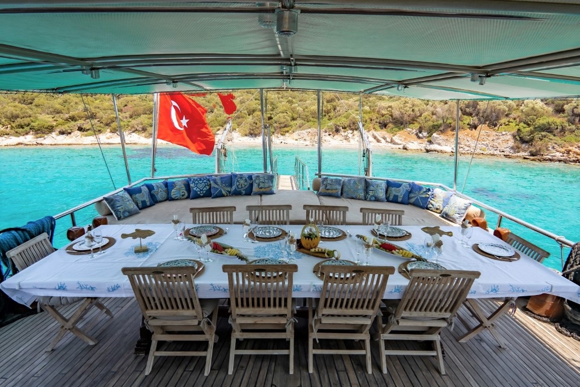 Bu rota boyunca yemekler teknede günlük olarak hazırlanır ve denizde geçen günlerin temposuna uygun şekilde servis edilir.