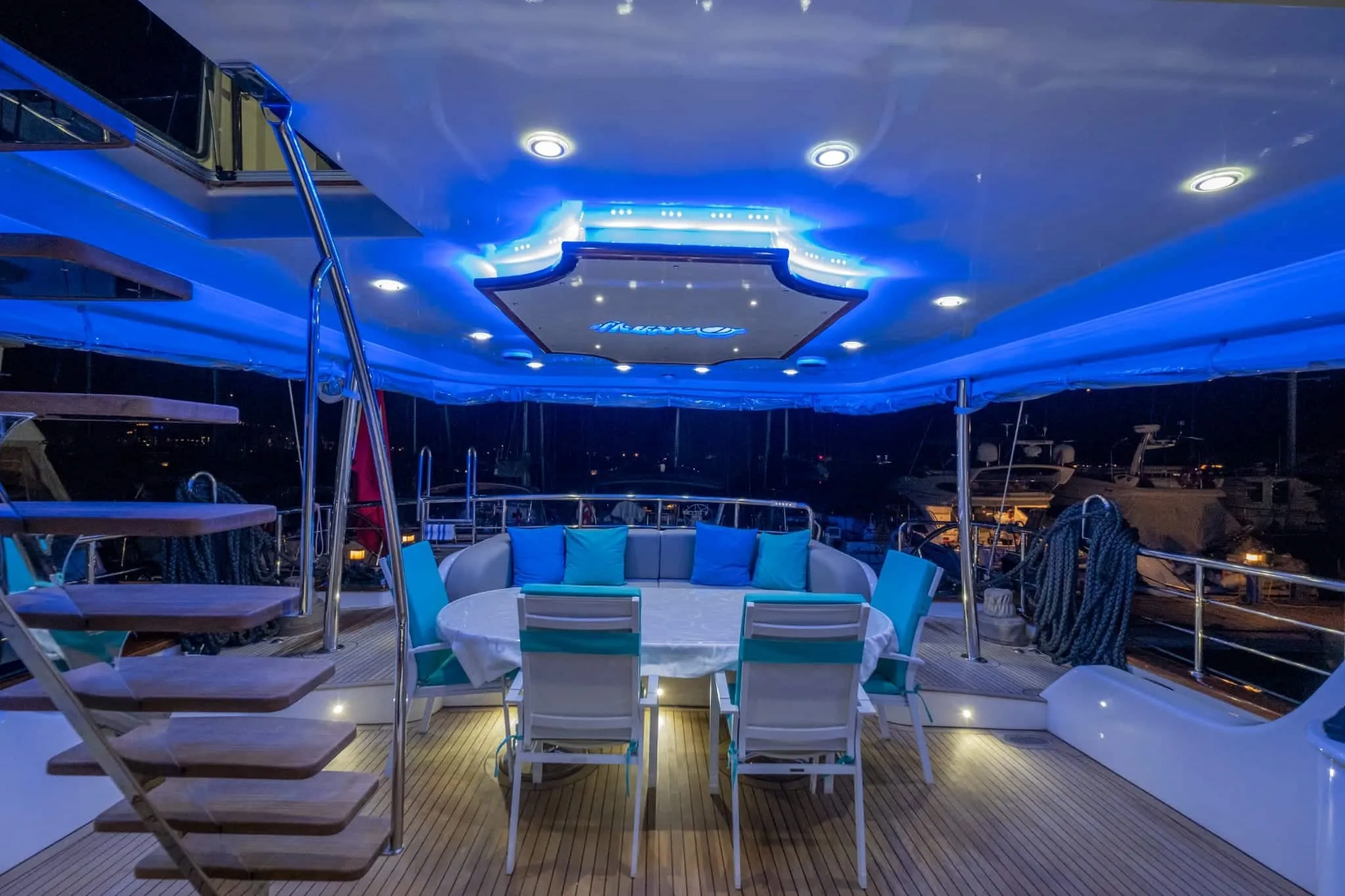 Profesyonel mürettebatımız, 1 kaptan, 1 aşçı, 1 gemici ve 1 servis personeli ile her an yanınızdadır. Mürettebatımız, konforunuz ve memnuniyetiniz için her detayı titizlikle organize ederken, lezzetli yemekler, üstün hizmet kalitesi ve güler yüzlü yaklaşımlarıyla tatilinizi unutulmaz kılacaktır. teknemizi diğer teknelerden ayıran en büyük özelliklerden biri olan paltform, teknemizin arkasında bulunur, tekneye giriş ve çıkışınızı kolaylaştırarak sizlere ekstra yaşam alanı sağlar.