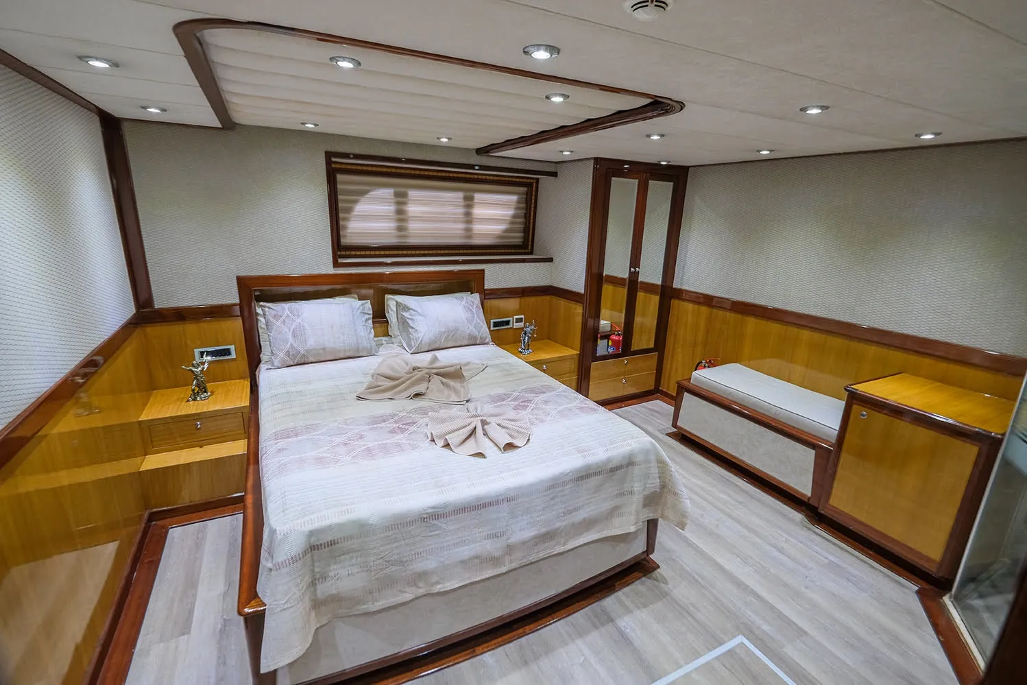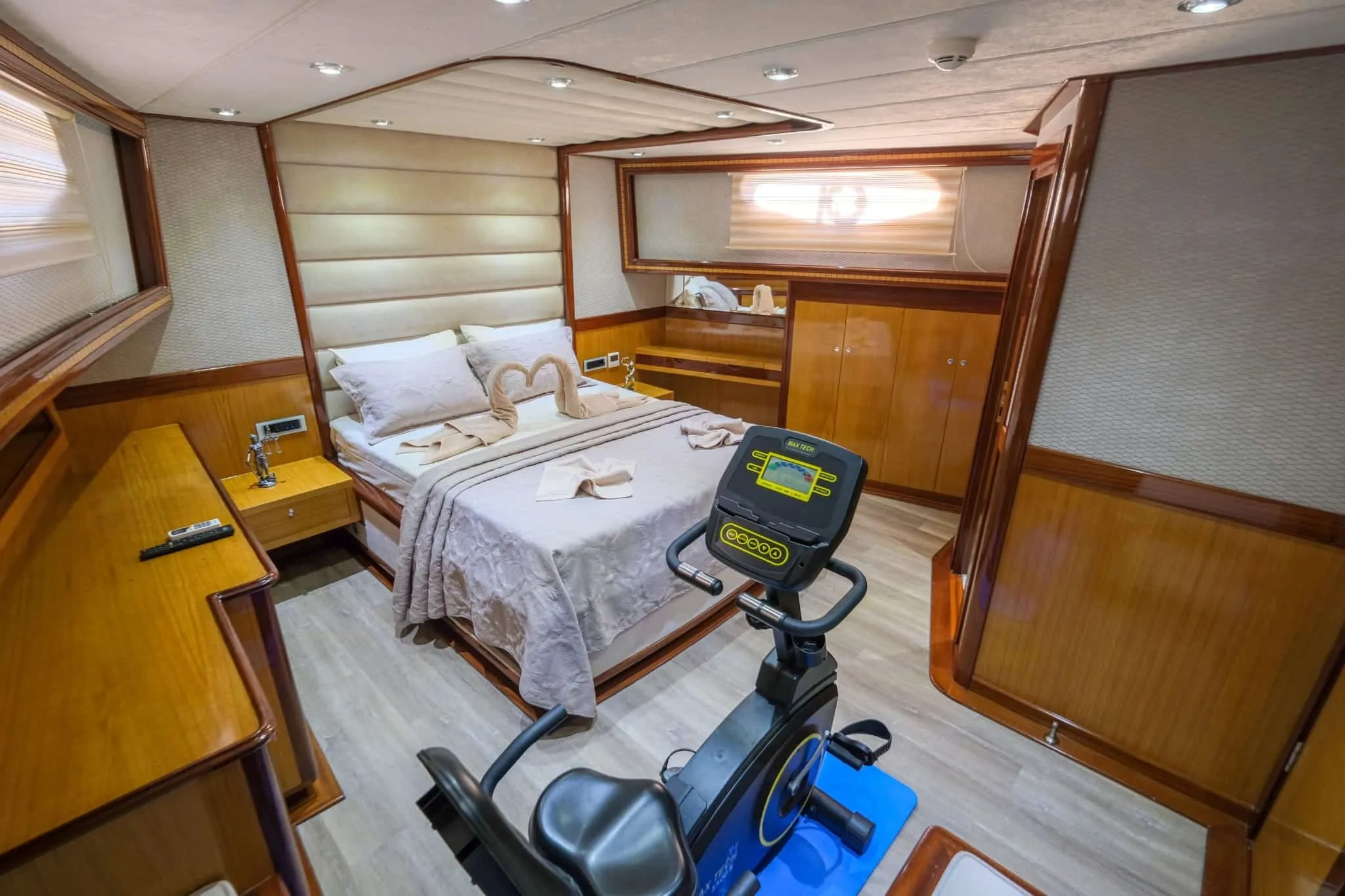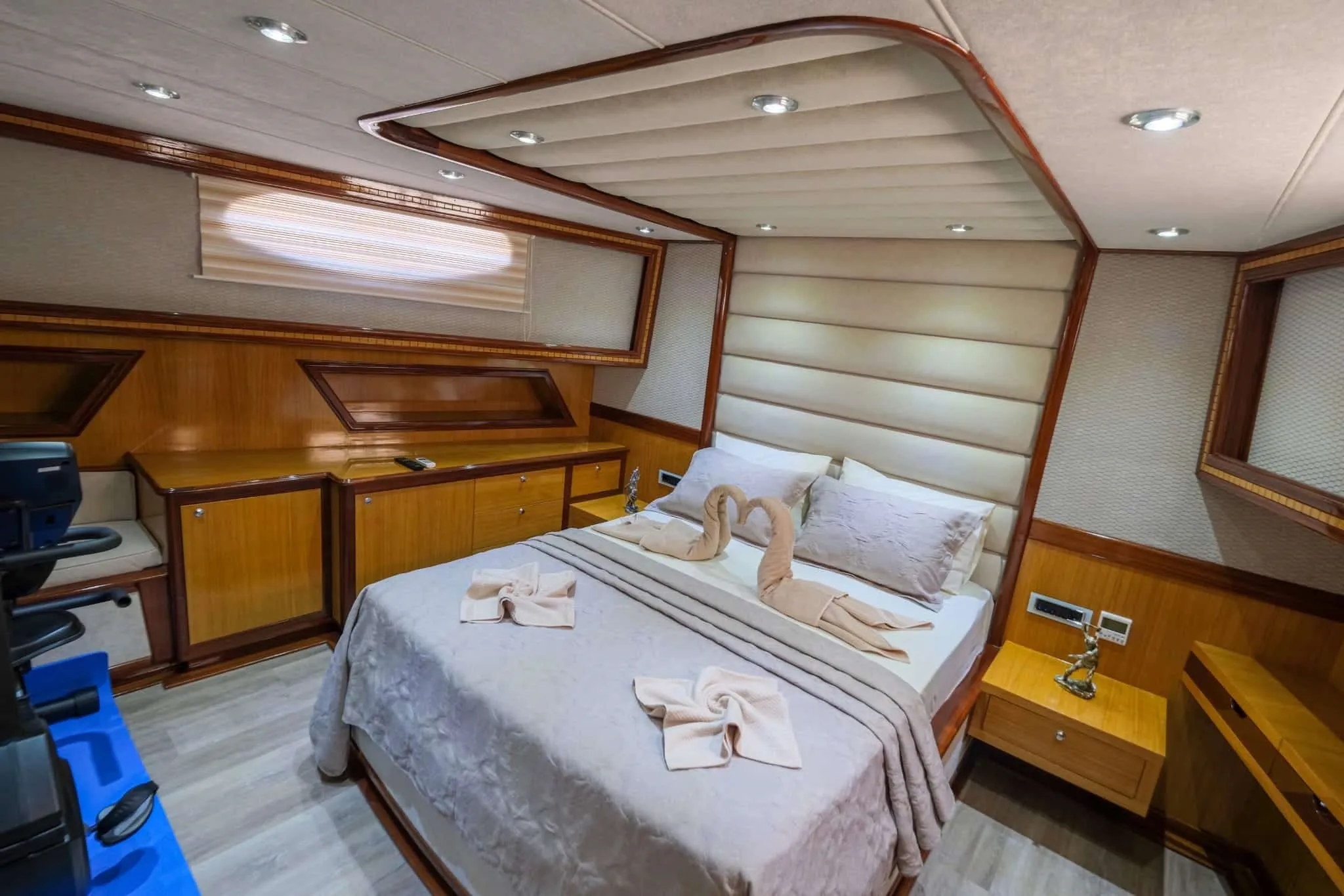 Yatımızda, 2 master kabin ve 2 double kabin olmak üzere toplam 4 geniş kabin bulunmaktadır. Hem şık tasarımı hem de mükemmel konforuyla, her bir kabin tatilinizi benzersiz kılacak şekilde özenle yenilenmiştir. 2023 yılında tamamen yenilenmiş ve lüks detaylarla donatılmış teknemiz, size ve sevdiklerinize konforlu bir seyahat ortamı sunar.