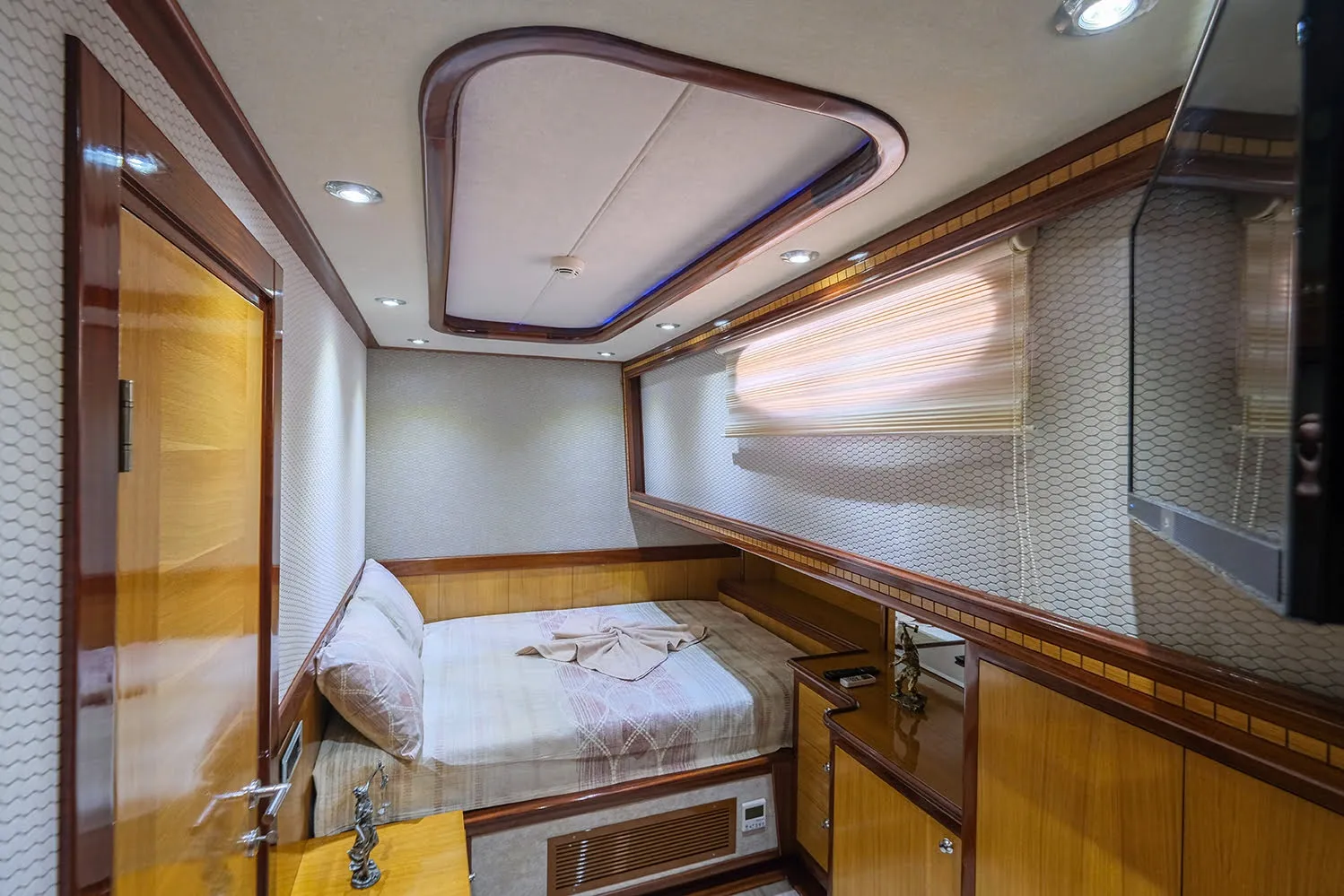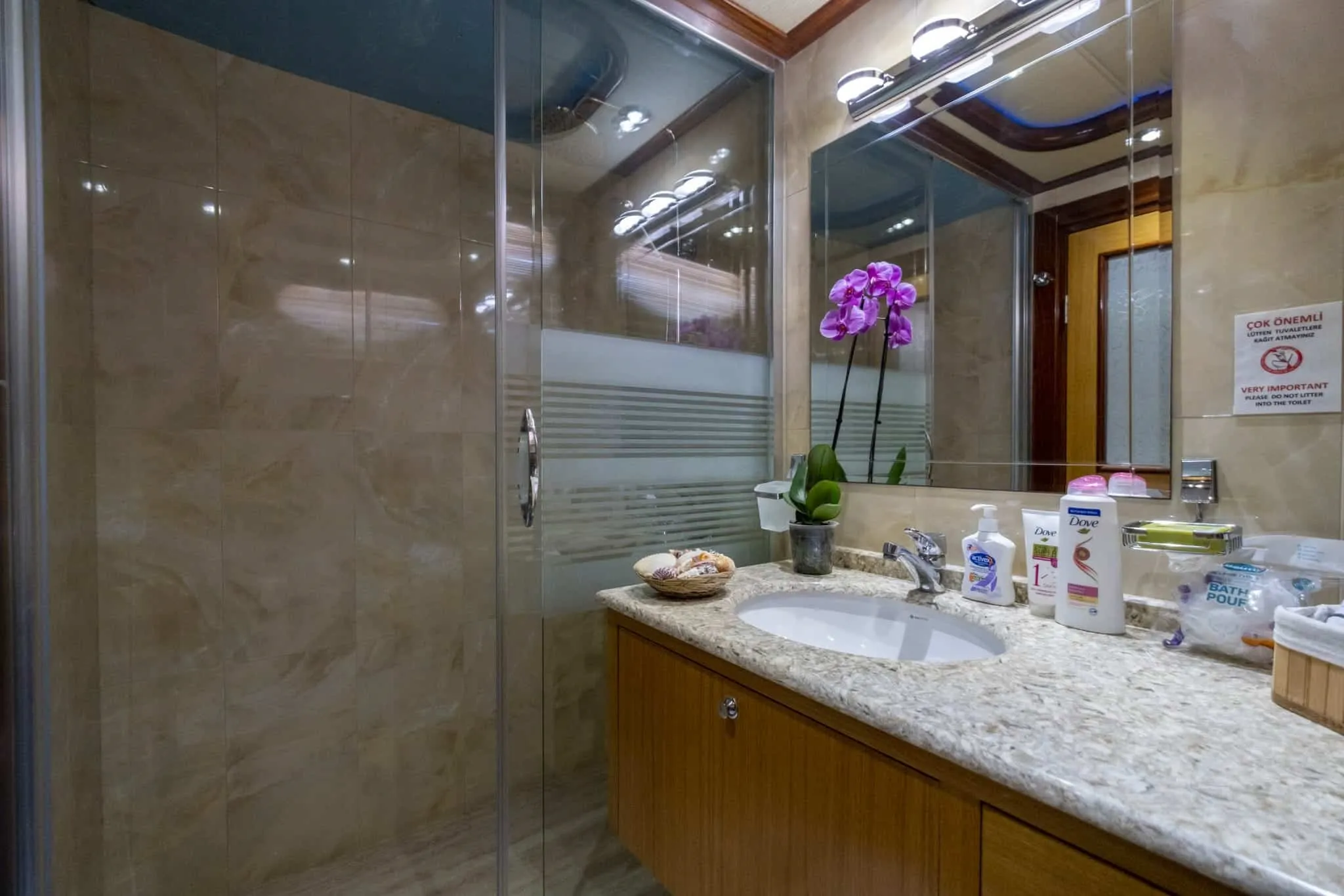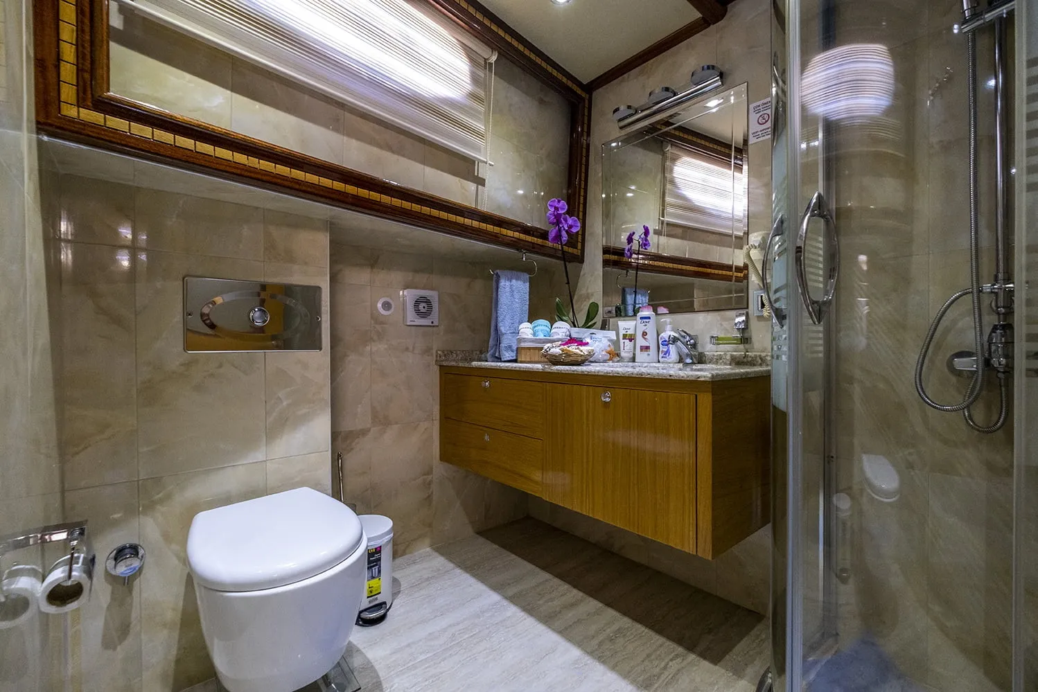 Yatımızda, 2 master kabin ve 2 double kabin olmak üzere toplam 4 geniş kabin bulunmaktadır. Hem şık tasarımı hem de mükemmel konforuyla, her bir kabin tatilinizi benzersiz kılacak şekilde özenle yenilenmiştir. 2023 yılında tamamen yenilenmiş ve lüks detaylarla donatılmış teknemiz, size ve sevdiklerinize konforlu bir seyahat ortamı sunar.