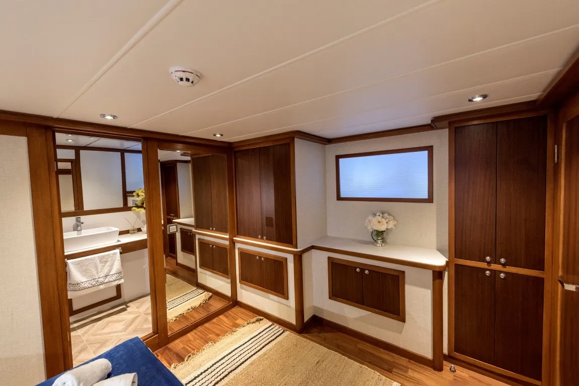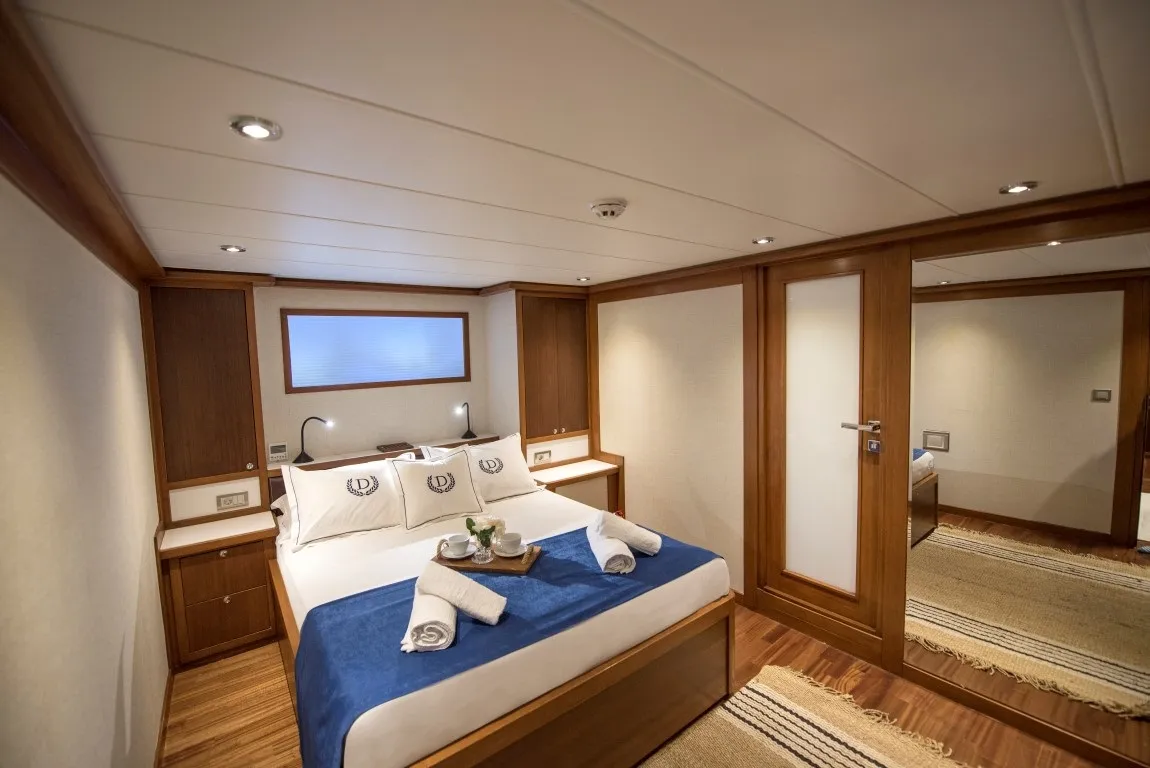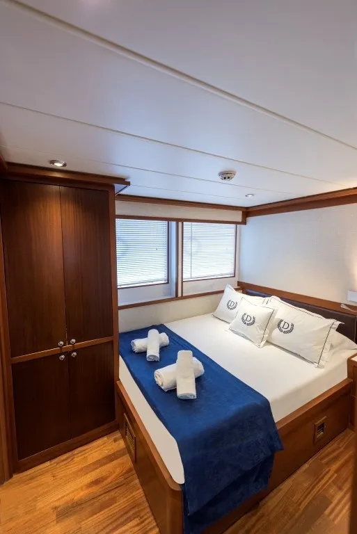 2016 yılında denize indirilen ve her kış düzenli bakımları yapılan, 20 metre uzunluğundaki lüks trawler teknemiz Ruzanna Trawler, lüks plus kategorisinde mavi yolculuk tutkunlarına eşsiz bir deneyim sunmaya devam ediyor. Şık tasarımı ve fonksiyonelliği bir araya getiren teknemiz, 1 master, 2 double ve 1 triple kabin olmak üzere toplamda 4 kabinle 8 kişilik misafir gruplarını ağırlama kapasitesine sahiptir.
